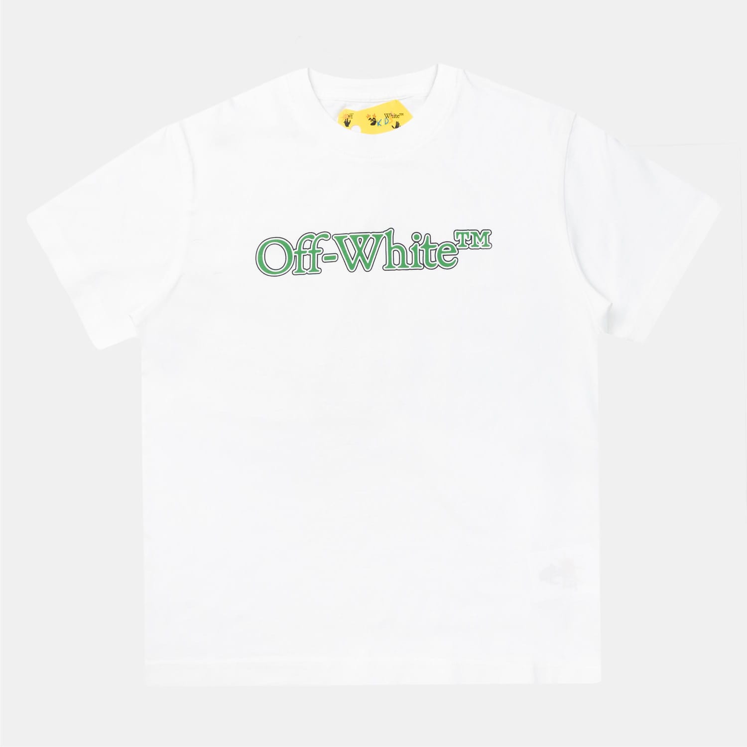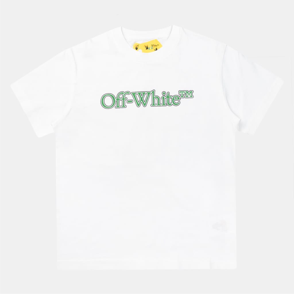 - "Off-White™" logo in a signature "bookish" font on the chest.