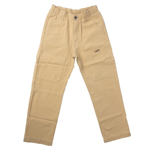 Juniors Off White Diagonal Outline Worker Pants in beige.