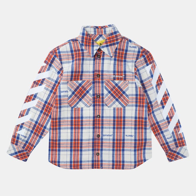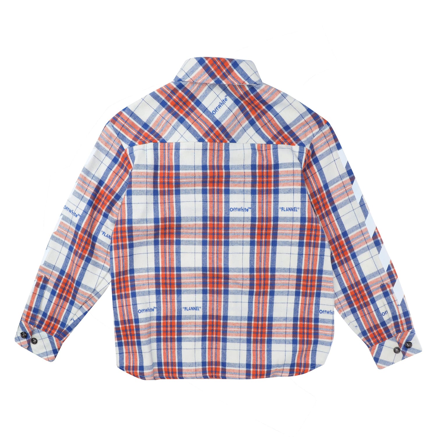 Juniors Off White Helvetica Diagonal Check Flannel Shirt in off white.