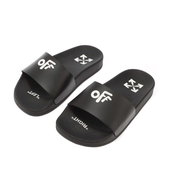 Juniors Off White Pool Sliders in black-white.