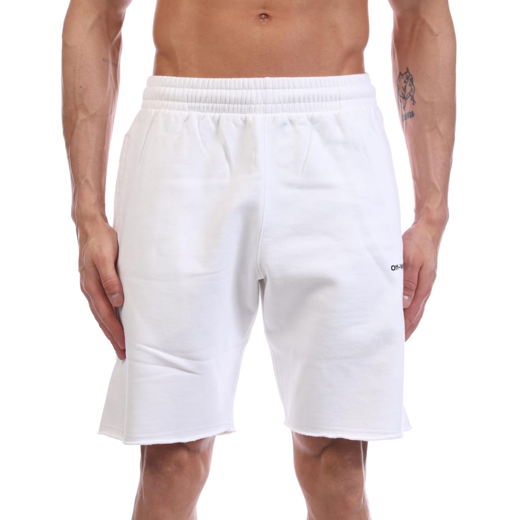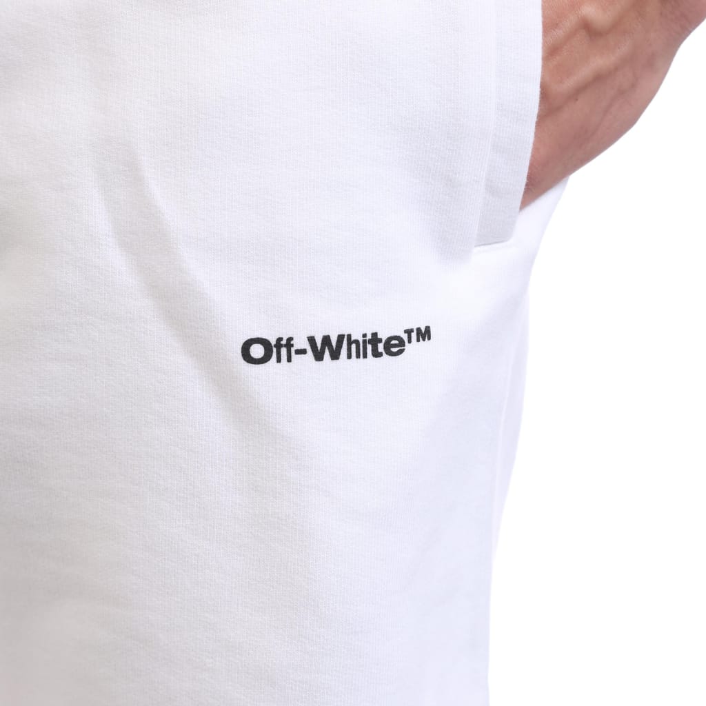 Mens Off White Wave Outline Diagonal Sweat Shorts in white / black.