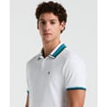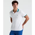 Classic polo-style collar. Short sleeves. Three button placket. Contrast details on the collar and cuffs. Sticker Pete branding. Interlock fabrication. Straight hem. -