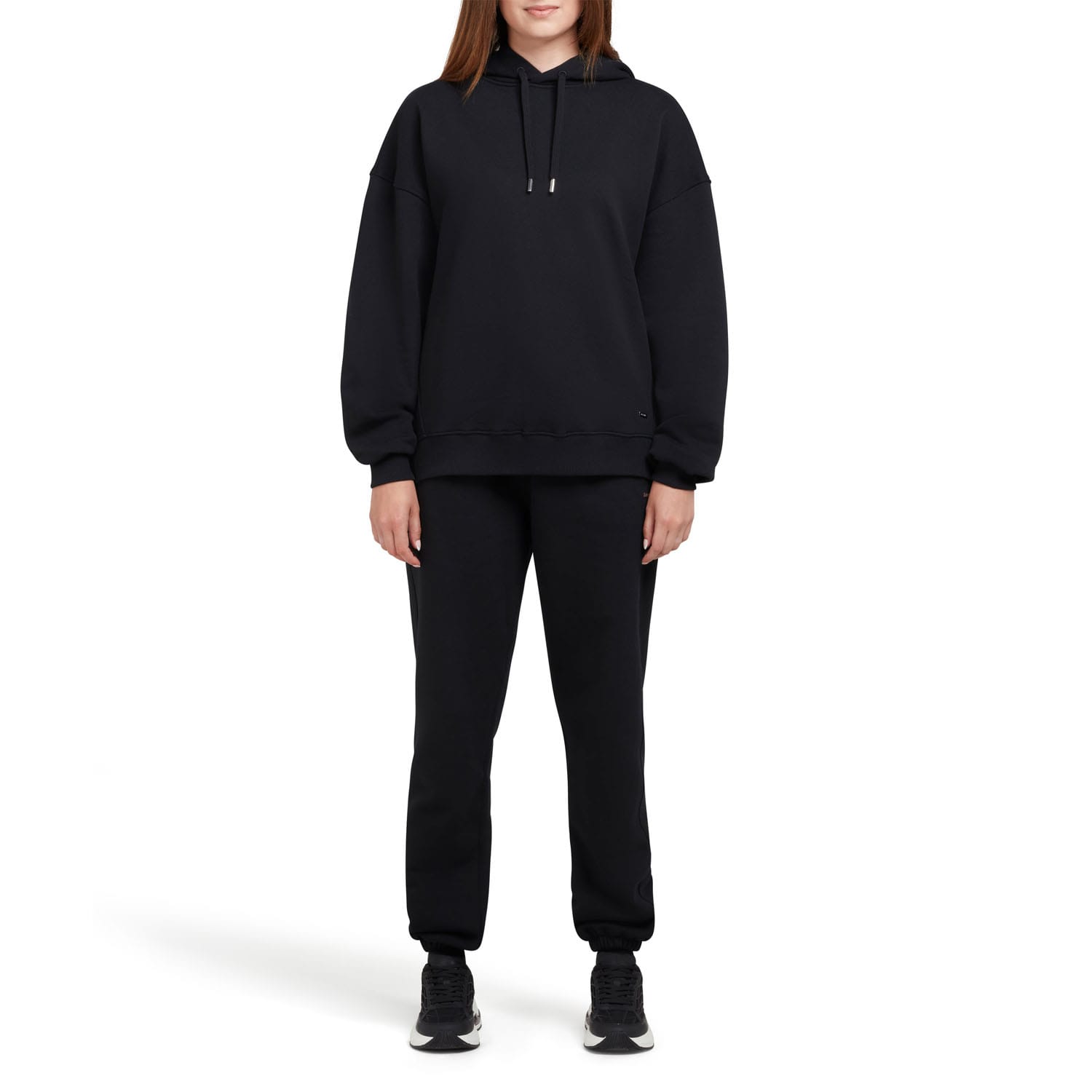 Elasticated waistband. Side pockets. Back pocket. Elasticated cuffs. Soft fleece. Regular fit. -