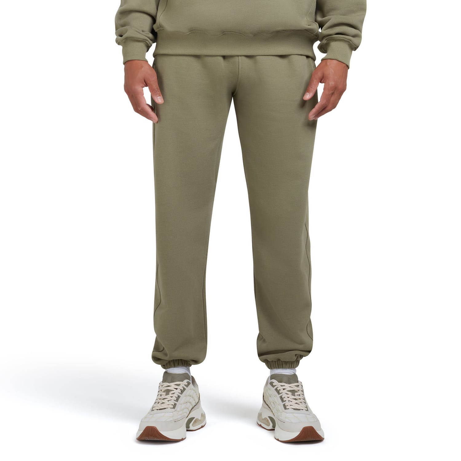 Elasticated waistband. Side pockets. Back pocket. Elasticated cuffs. Soft fleece. Regular fit. -