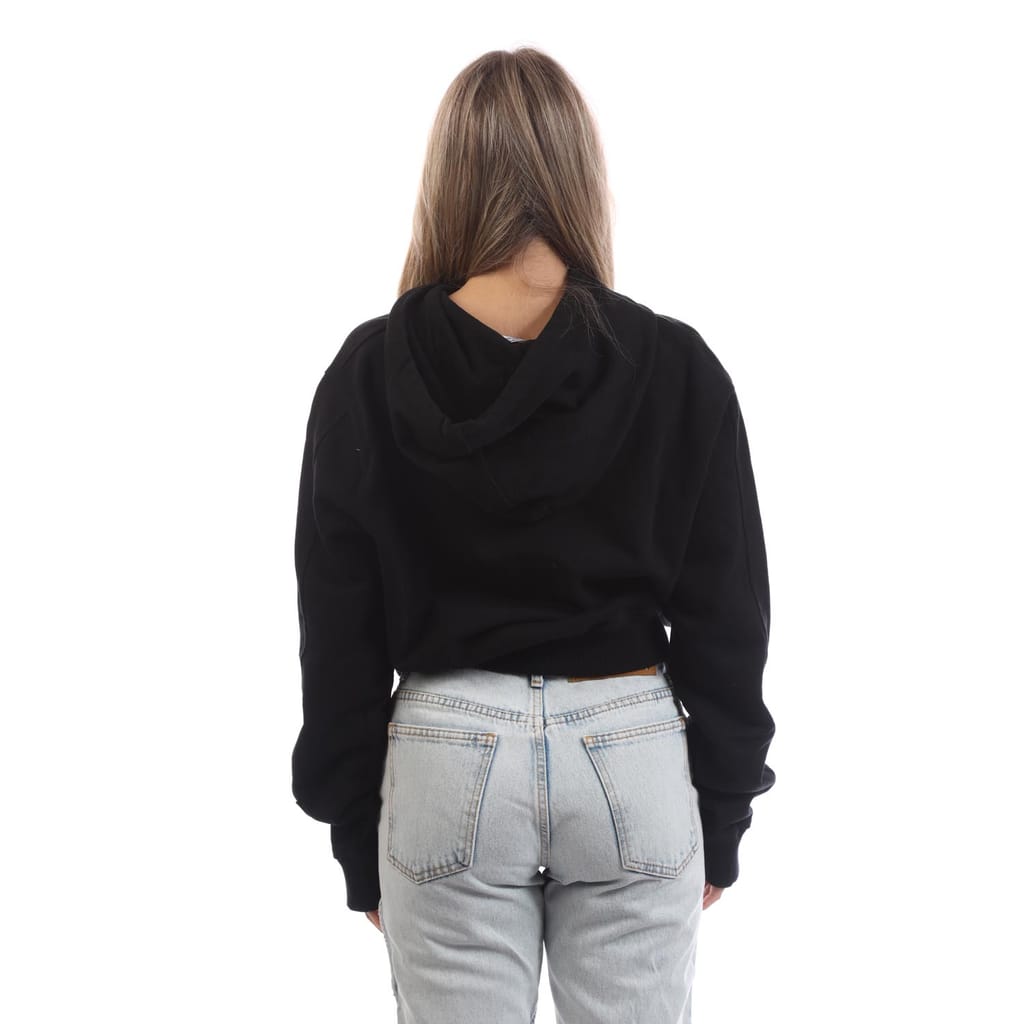 Womens Off White Meteor Flag Cropped Hoodie in black.