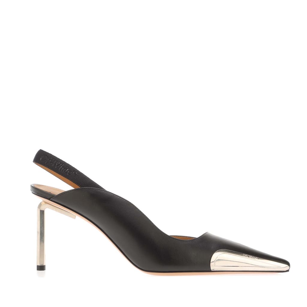 Womens Off White Allen Frame Slingback Pumps in black / silver.