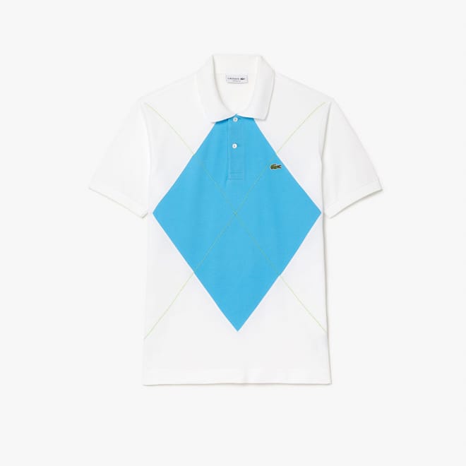 "Classic Fit L.12.12 Argyle Polo Shirt Organic cotton piqué Classic, comfortable fit Classic polo collar Contrasting stitched argyle motif Embroidered crocodile on chest" -