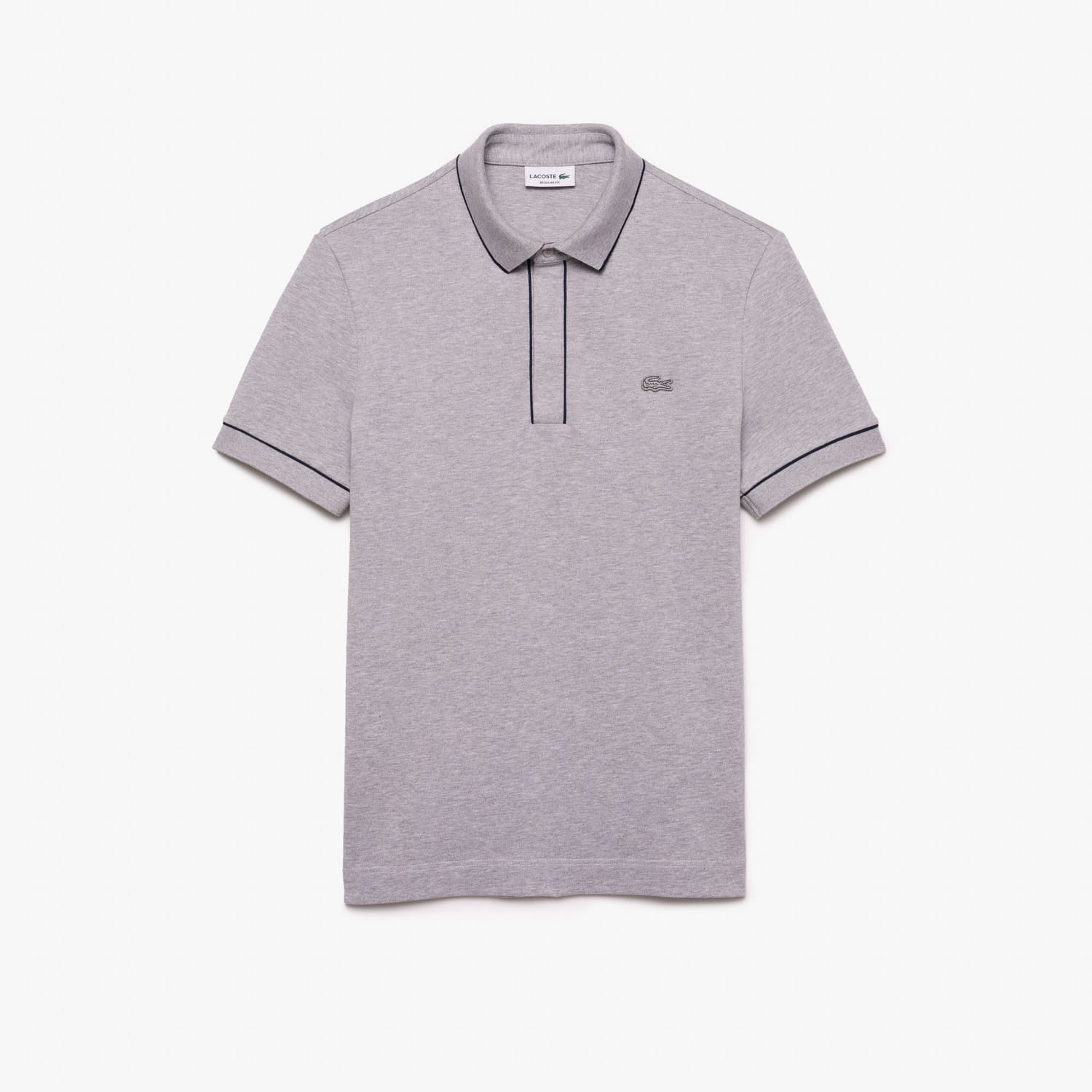 Mens Lacoste Regular Fit Paris Stretch Piqué Polo Shirt in silver chine