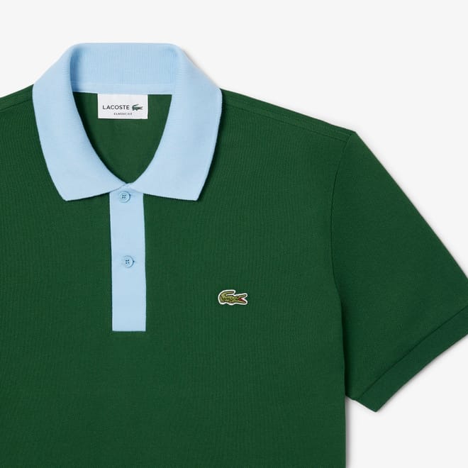 Mens Lacoste Classic Fit Contrast Collar L.12.12 Polo Shirt in green / overview.