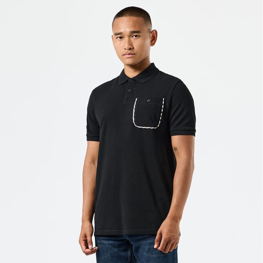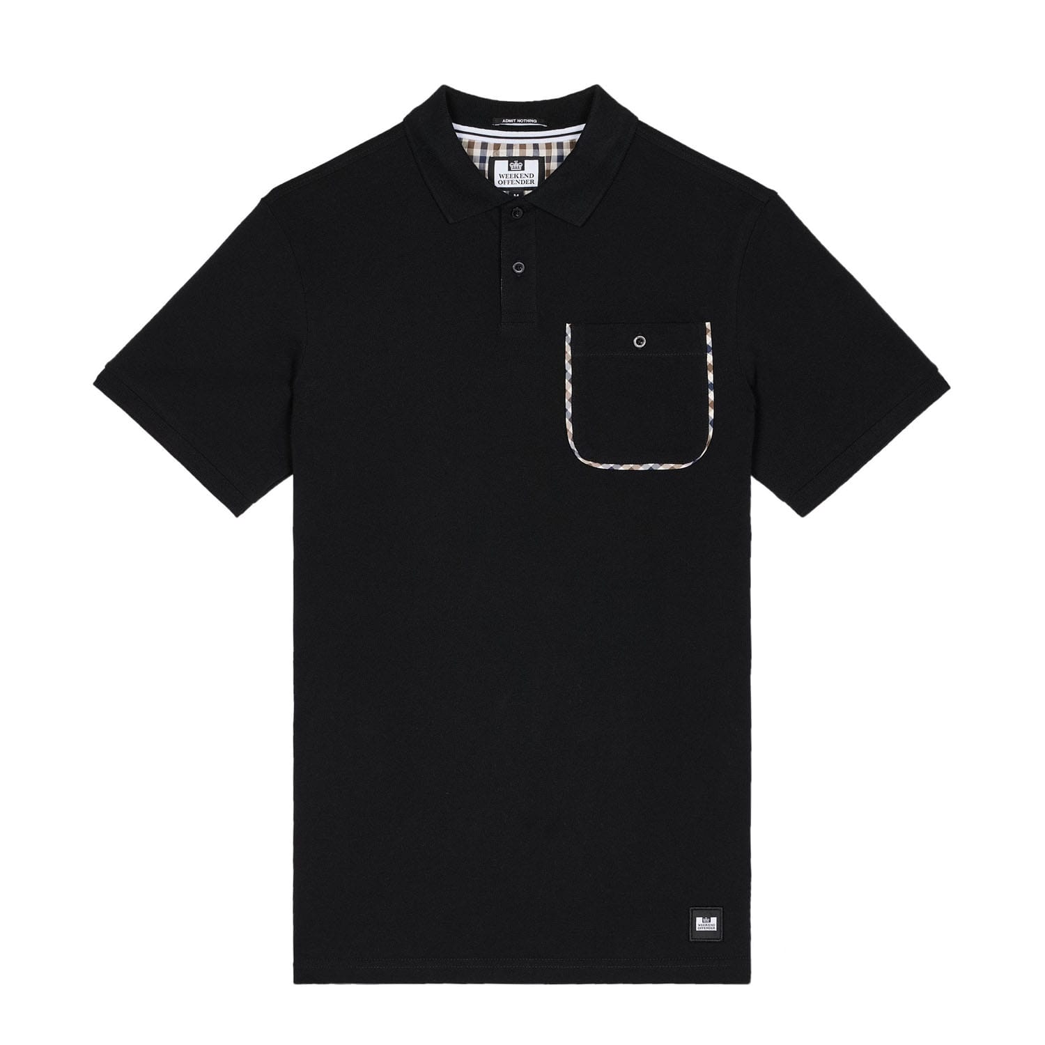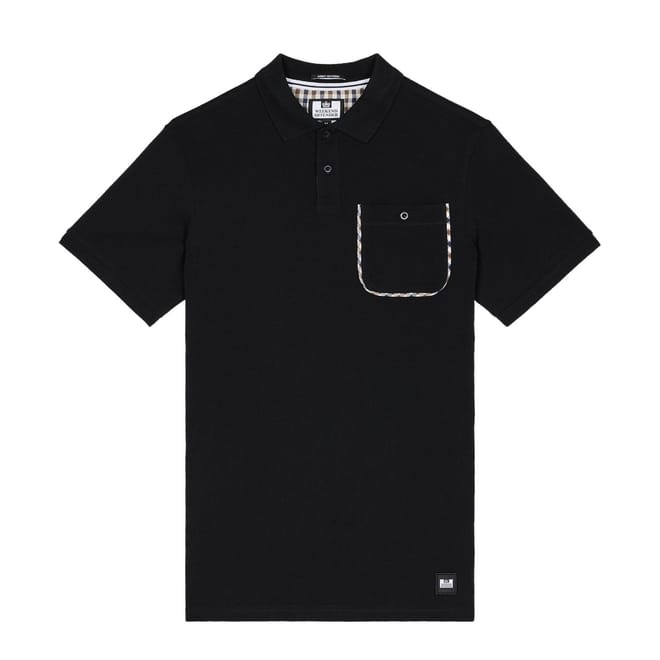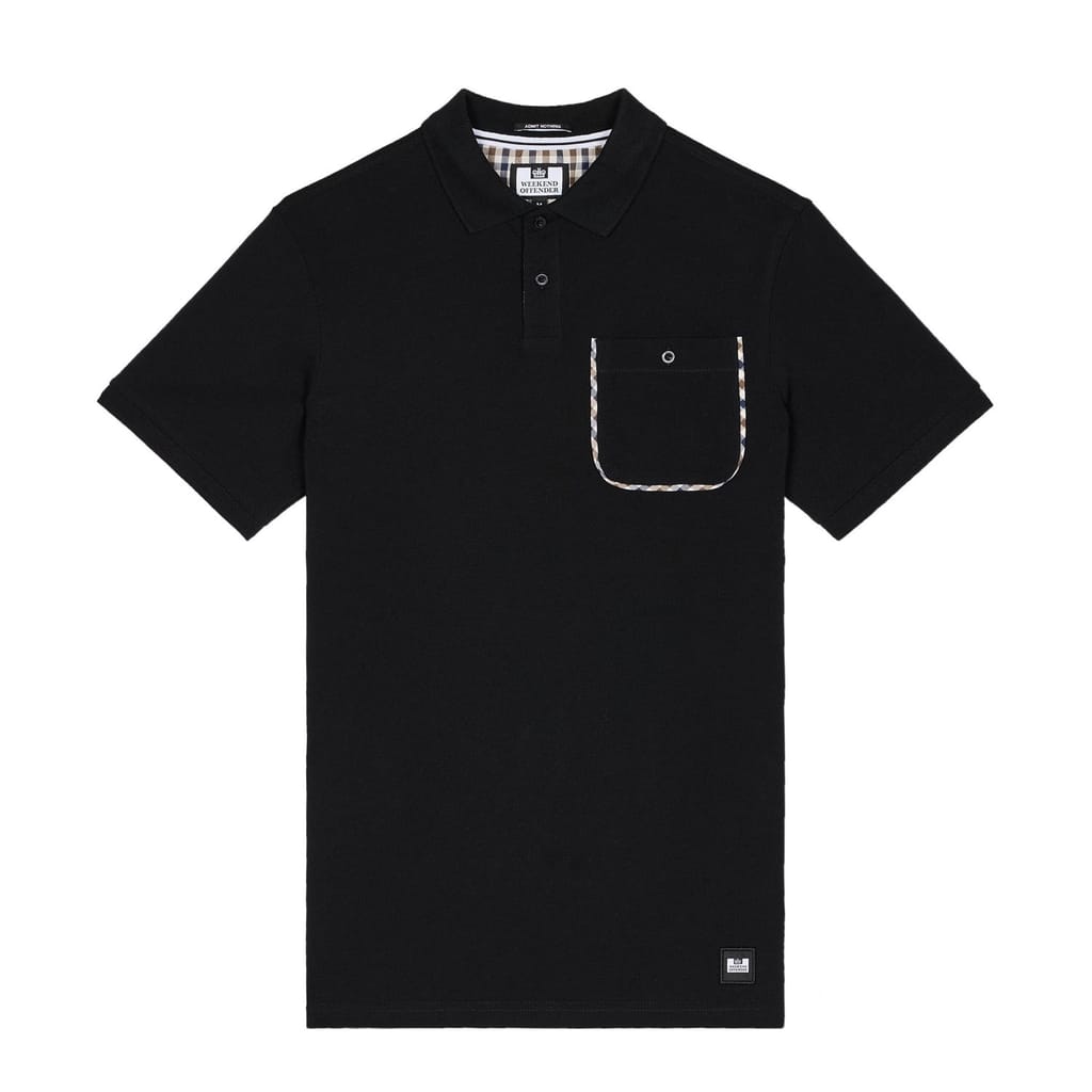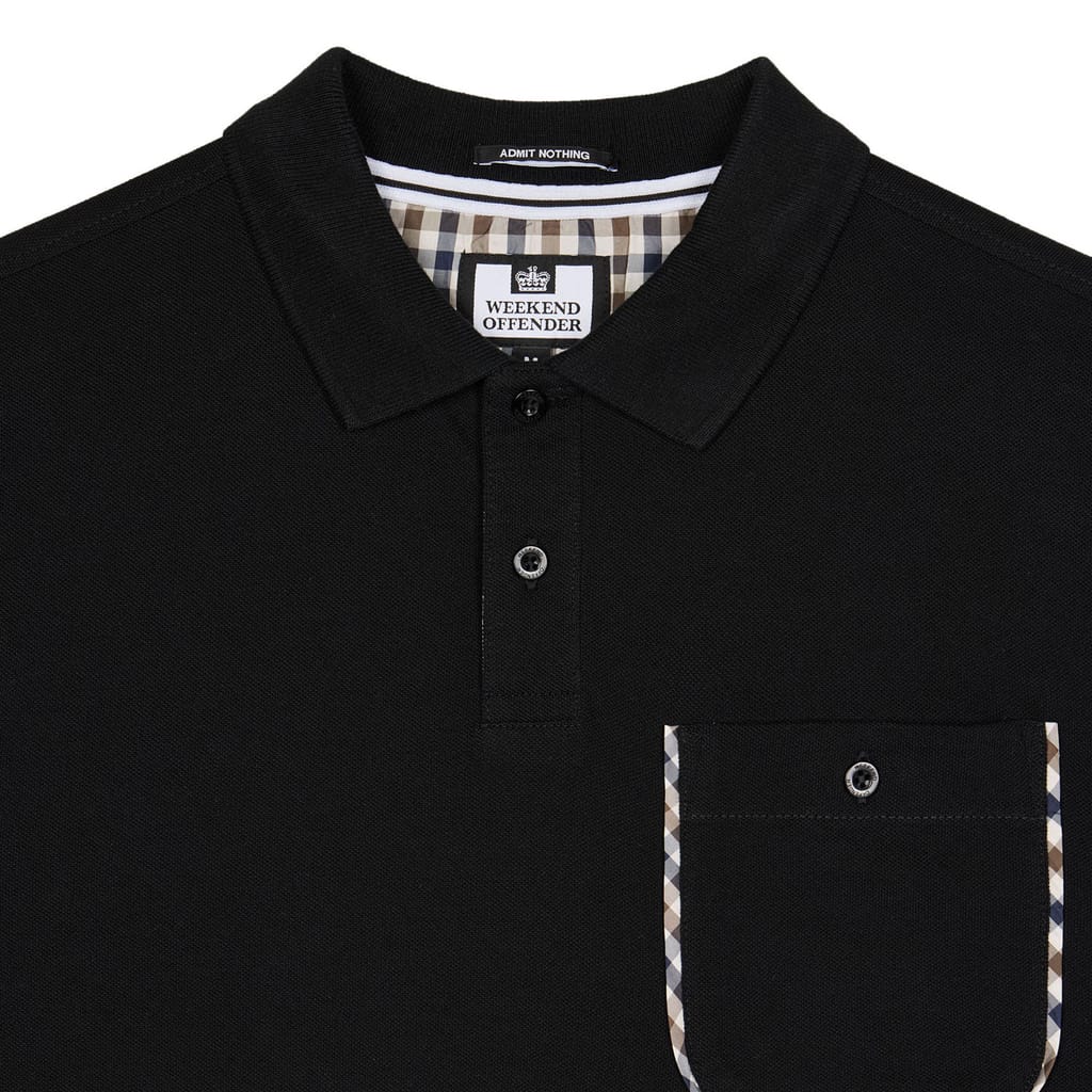 Mens Weekend Offender Spence Mid Check Detail Polo Shirt in black.