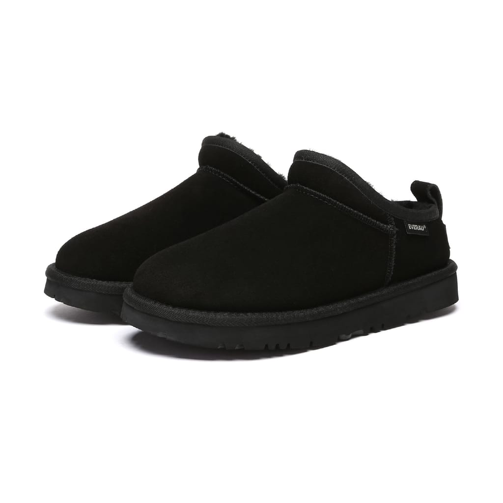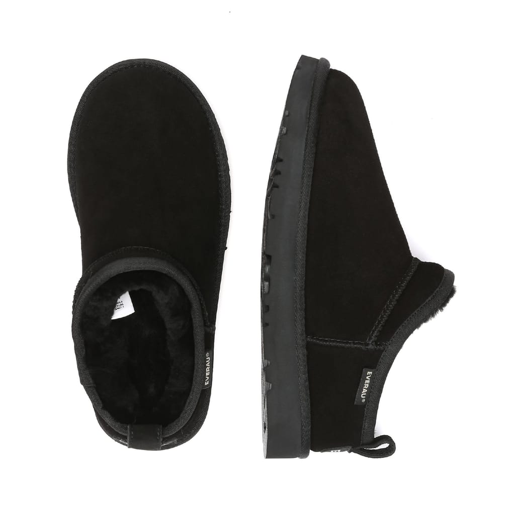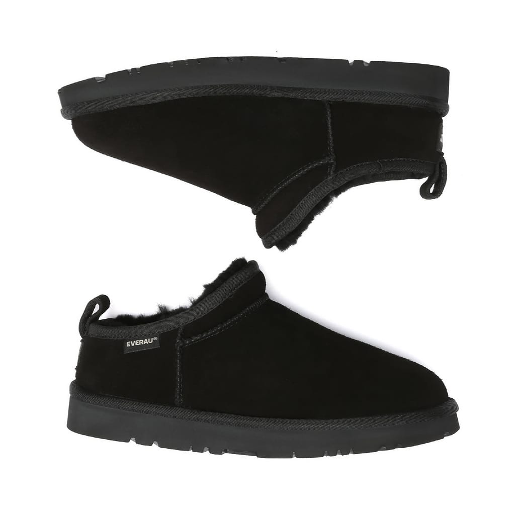 "Inspired by the classic silhouette, the EVERAU Mini Boots feature a slightly lower ankle design, making them easy to slip on and off—ideal for everyday wear and effortless style. Perfect for those who value convenience without compromising warmth or quality. Whether you’re running errands, relaxing at home, or heading out for a casual coffee, these mini boots deliver all-day warmth and dependable durability. Materials: • Upper: Cow Suede • Lining: Sheepskin Wool • Insole: Sheepskin Wool • Outsole: EVA" -