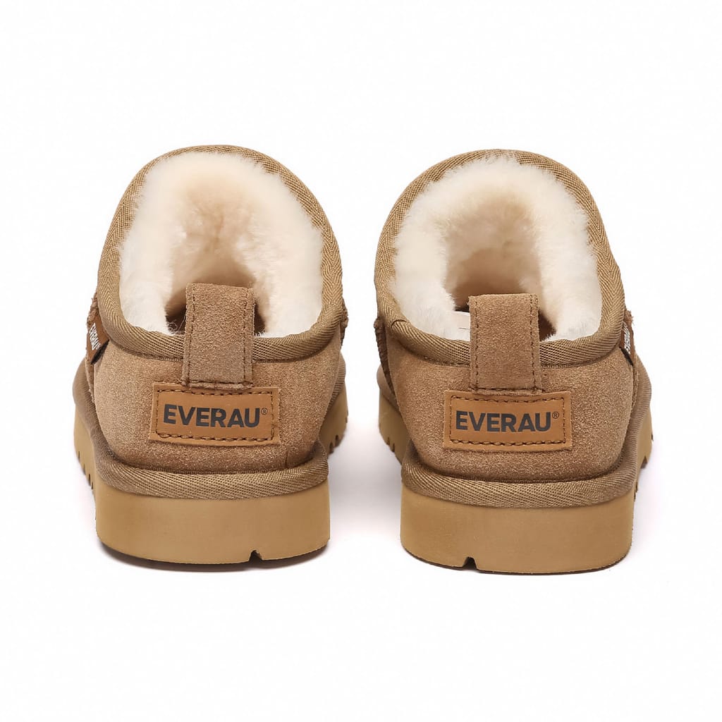 "Inspired by the classic silhouette, the EVERAU Mini Boots feature a slightly lower ankle design, making them easy to slip on and off—ideal for everyday wear and effortless style. Perfect for those who value convenience without compromising warmth or quality. Whether you’re running errands, relaxing at home, or heading out for a casual coffee, these mini boots deliver all-day warmth and dependable durability. Materials: • Upper: Cow Suede • Lining: Sheepskin Wool • Insole: Sheepskin Wool • Outsole: EVA" -