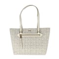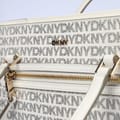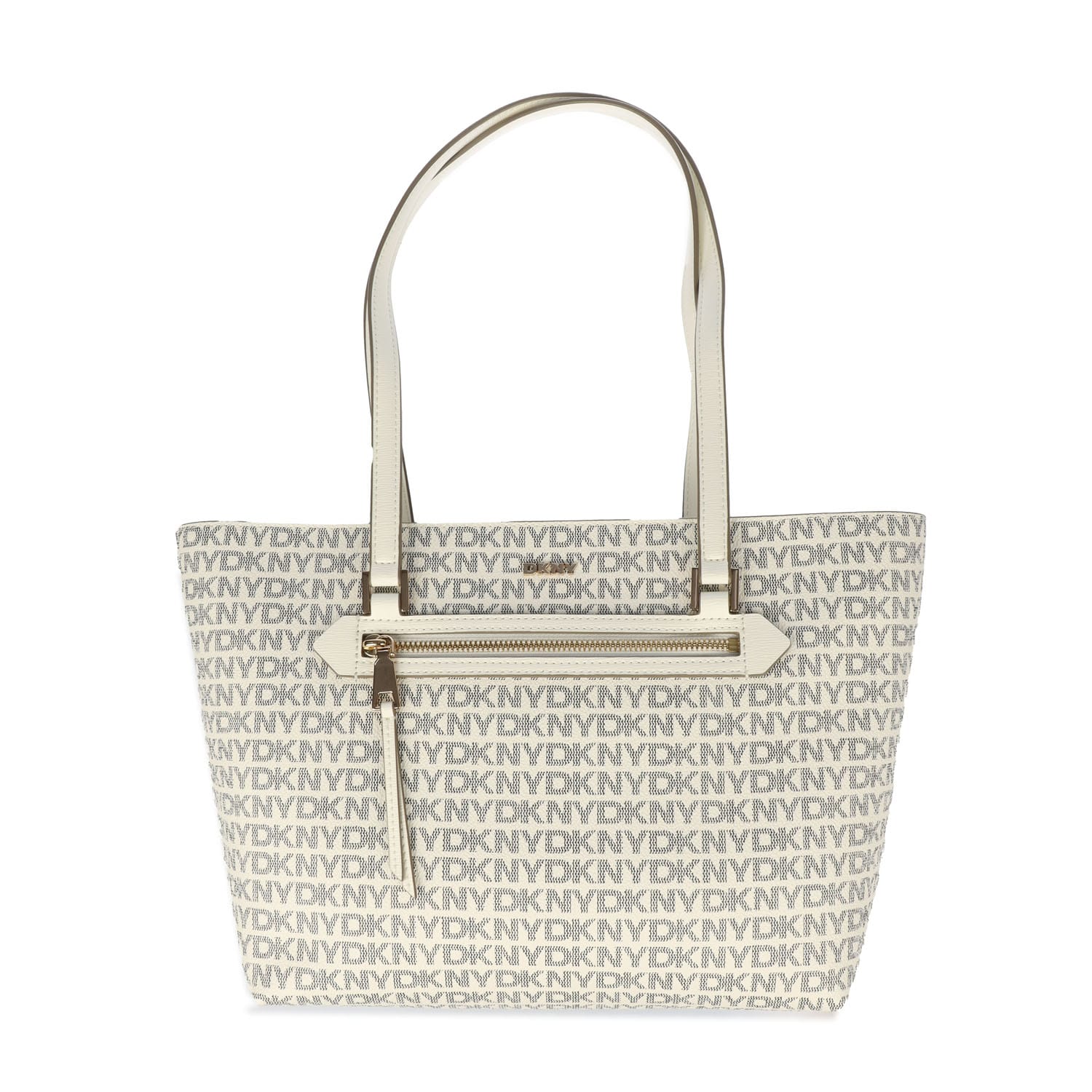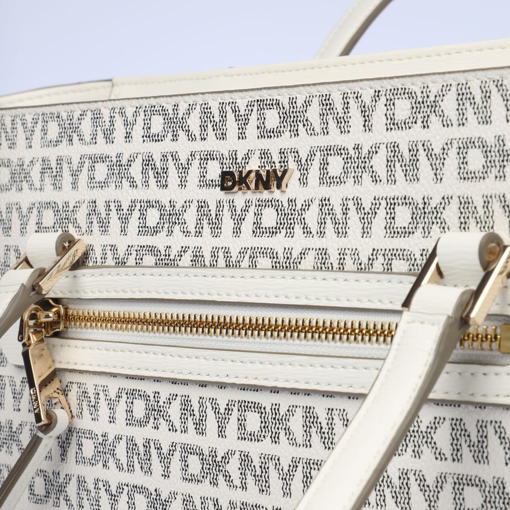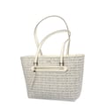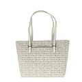 Top zip fastening. Front zip-fastening pocket and a main compartment. All-over logo print with a logo plaque. Canvas and leather. -