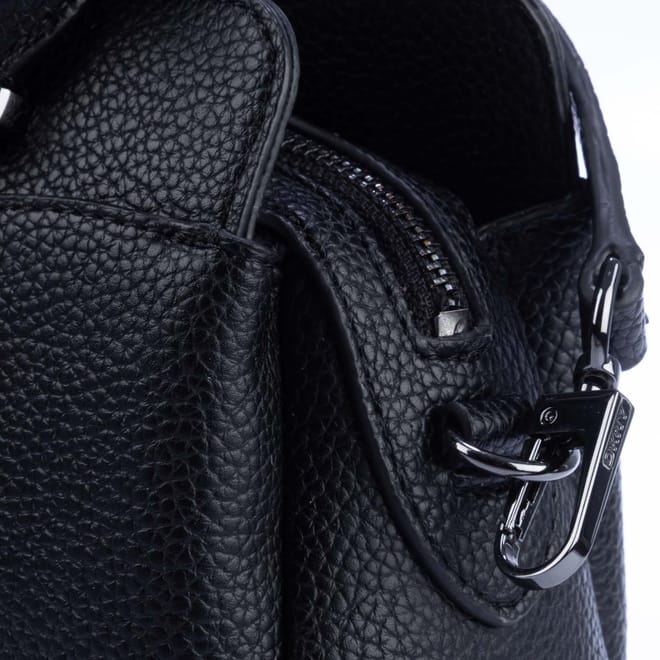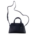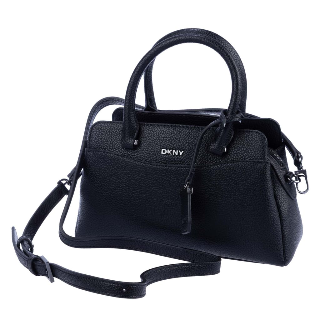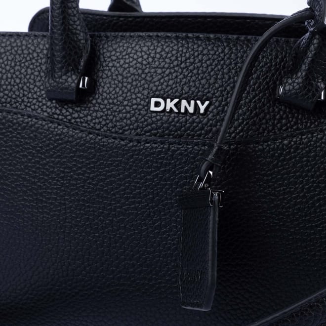 Comes with detachable strap. W at base: 10.5 x H: 7 x D: 4. Logo accents and a classic shape make the DKNY small leather satchel a chic choice for everyday designer style. 3 L handles; 21-1/2 L adjustable detachable strap. Zip closure. Silver-tone exterior hardware. 1 interior middle zip pocket, 2 inside open pockets, 1 outside pocket. -