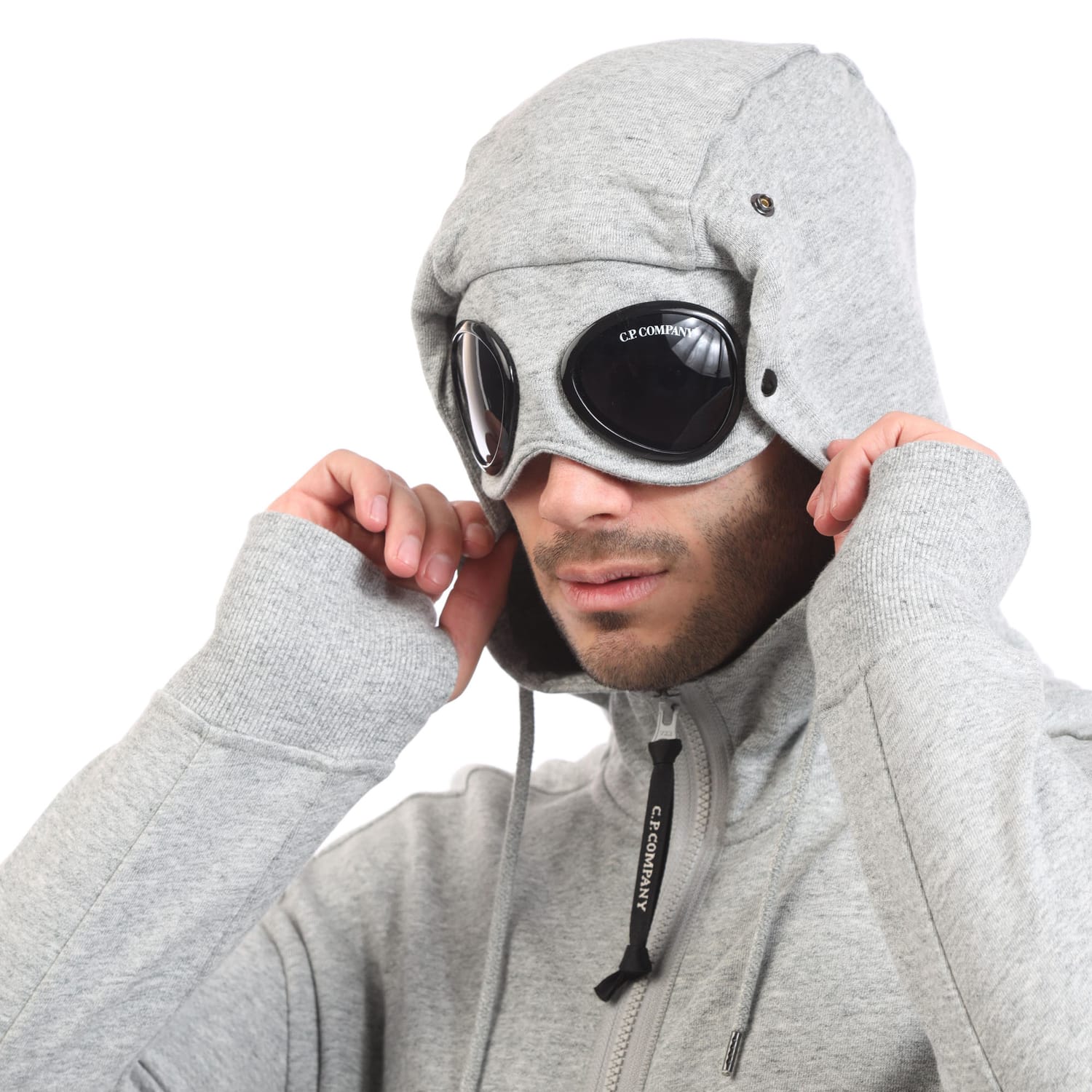 Mens C.P. Company Diagonal Raised Fleece Lens Zip Hoodie in grey.