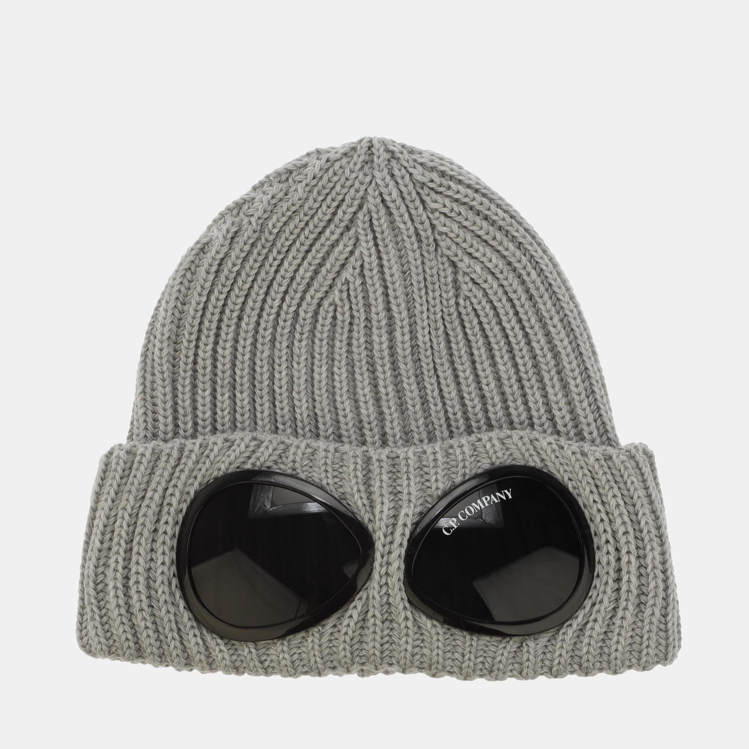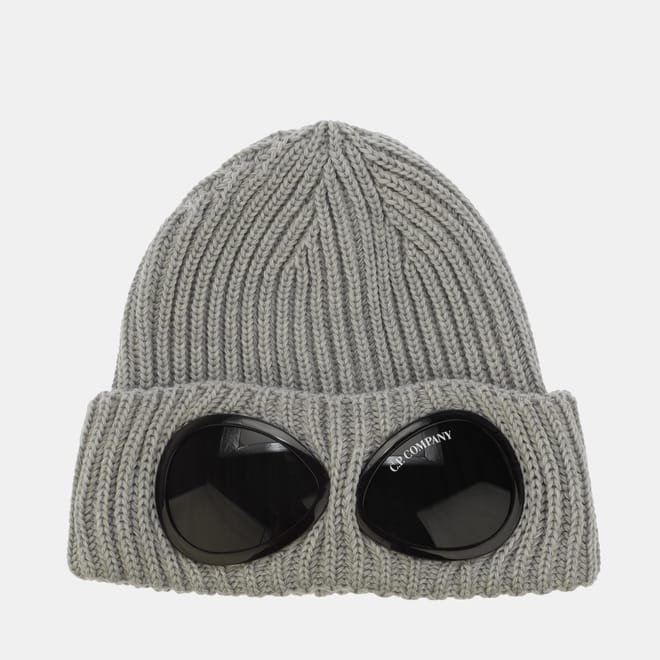 Mens C.P. Company Extrafine Merino Wool Goggle Beanie in grey.