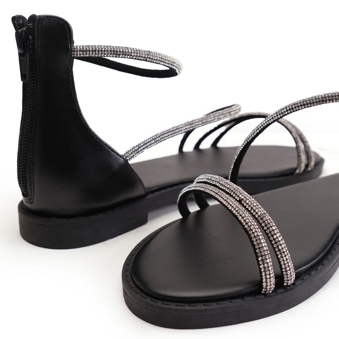 Womens Where’s That From Embellished Gladiator Sparkly Flat Sandals in black.