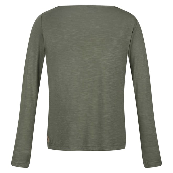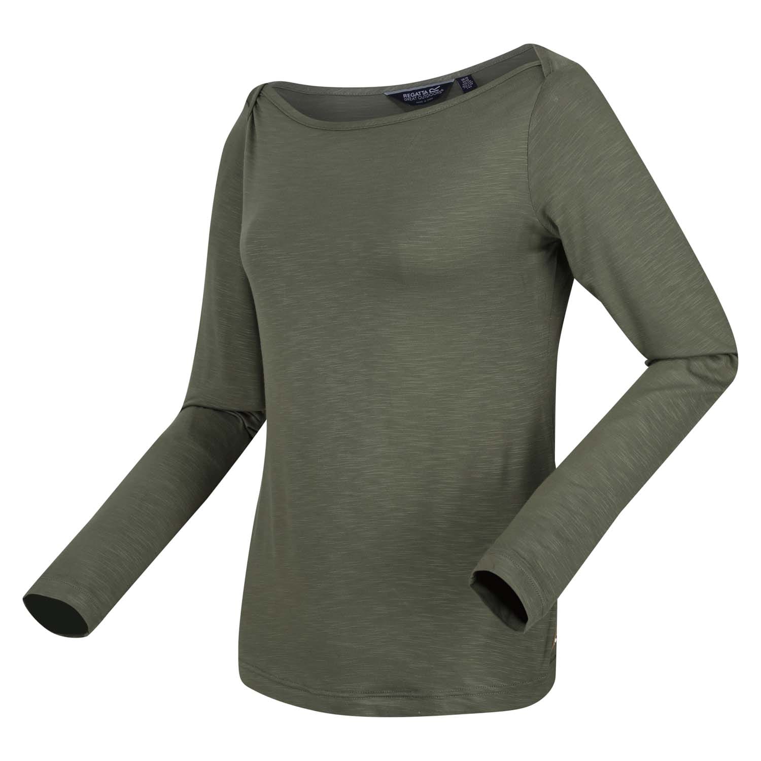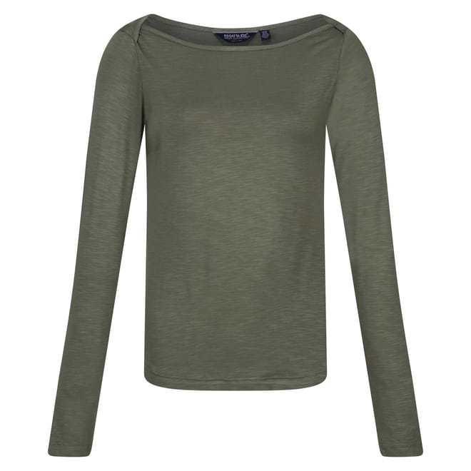 The Lakeisha women's top from Regatta is the perfect every day top. The women's long sleeve top is made with a slub jersey fabric, perfect for every day wear. The top features a wide boat shaped neckline and flattering shaped hem for added shape. Wear with chinos and sandals to complete the look. -