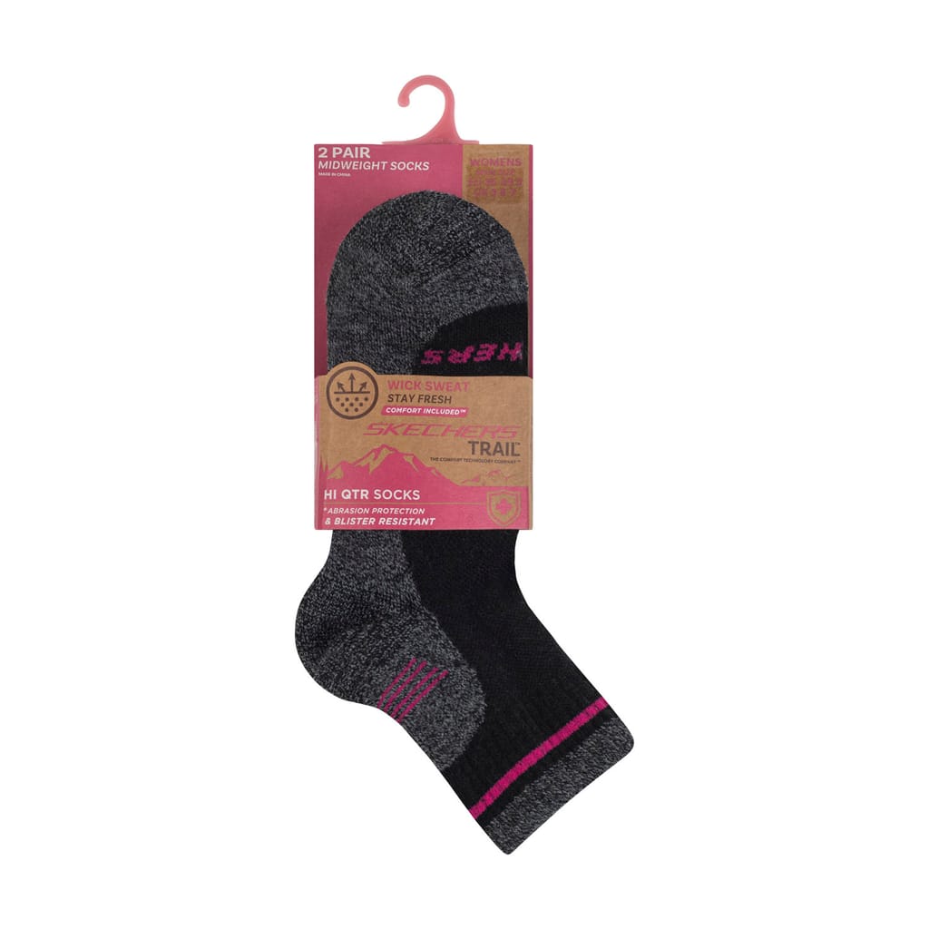Skechers 2 Pack of Trail Quarter Crew Socks in black.