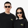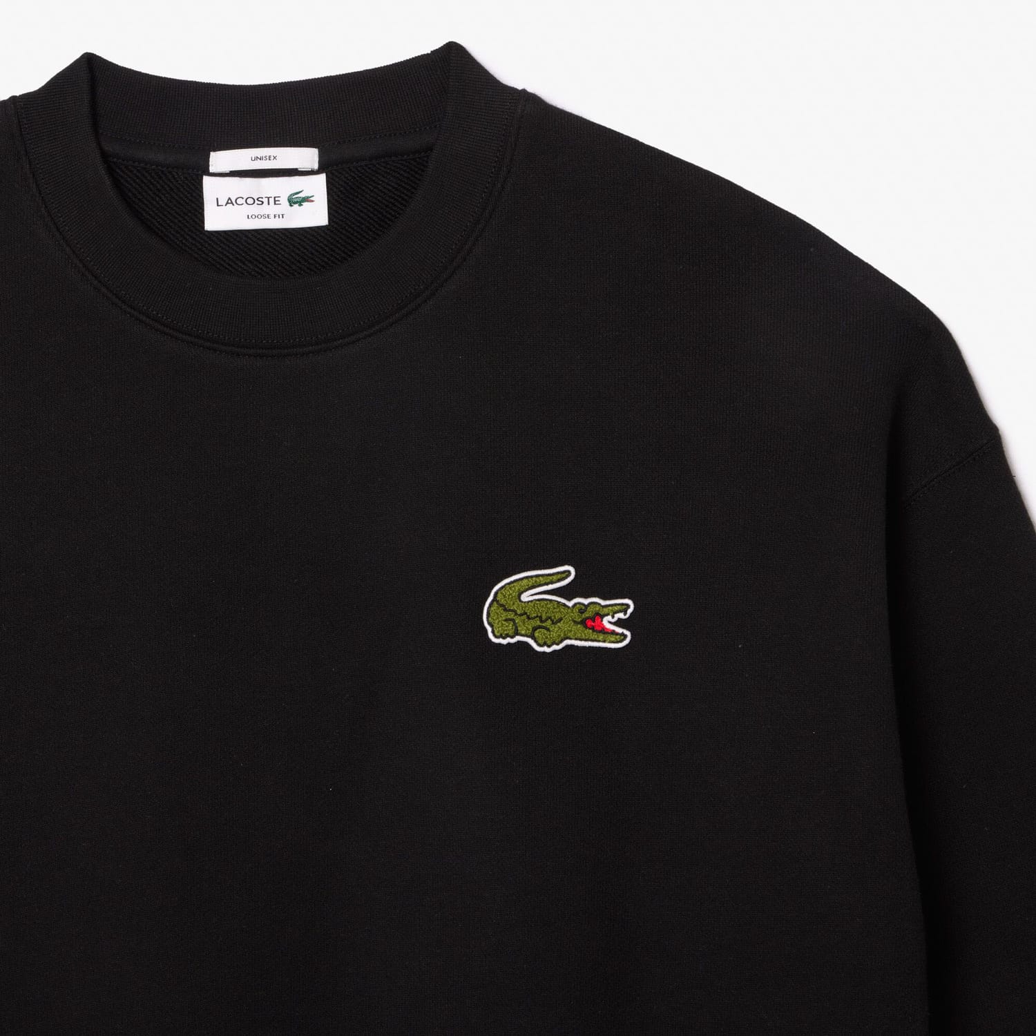 Unisex Lacoste Loose Fit Badge Accent Fleece Sweatshirt in black
