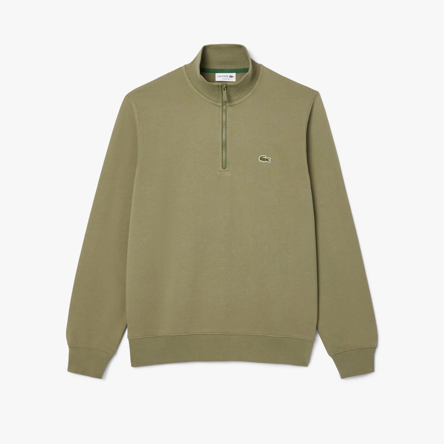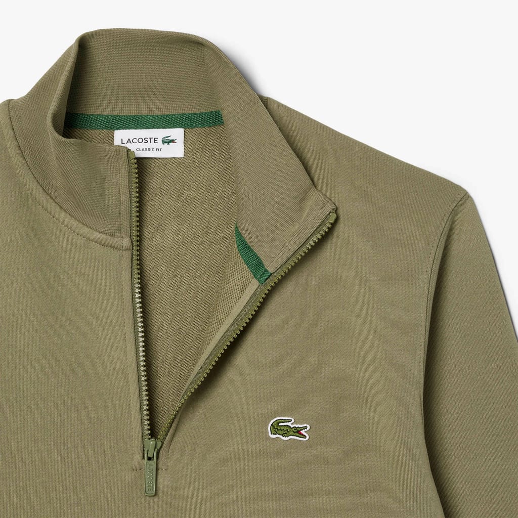 Mens Lacoste High Neck Zipped Fleece Sweatshirt in khaki