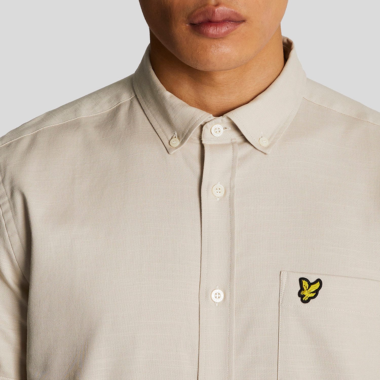 Button down collar. Short sleeves. Button fastening. Chest pocket. Lyle And Scott signature embroidered badge logo. Shaped hem. -