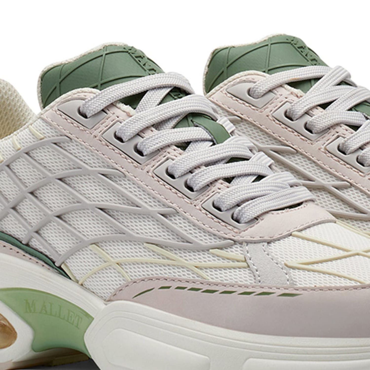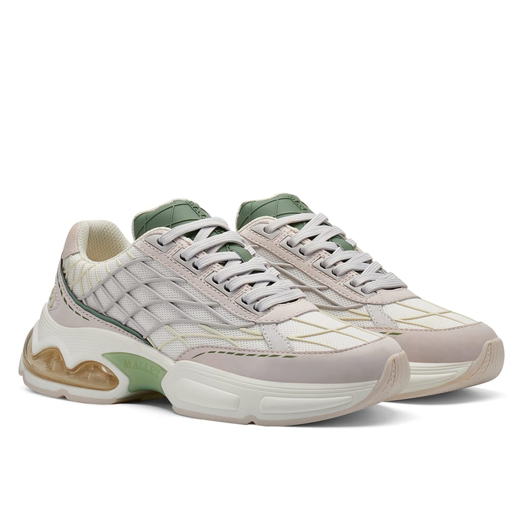 City chic and sophisticated these Neptune Trainers from Mallet make a contemporary addition to your everyday ensemble. Inspired by London's iconic Gherkin skyscraper these trainers are intricately crafted using recycled mesh underlays for comfort meaning they are not only sustainable but stylish too especially with the embroidered stitch upper panel lines reminiscent of the building's distinctive contours. The black KPU tongue and box leather heel tab add a touch of sophistication, mirroring the skyscraper's sleek facade. With a reliable lace fastening these trainers make for a secure fit and comfortable feel.The Neptune Black Stitch's aesthetic is completed by a white midsole, contrasting with a black outsole tread, midsole bubble, and gloss outsole insert, creating a dynamic visual impact, punctuated by silver-foil branding these trainers come to a distinctive finish. -