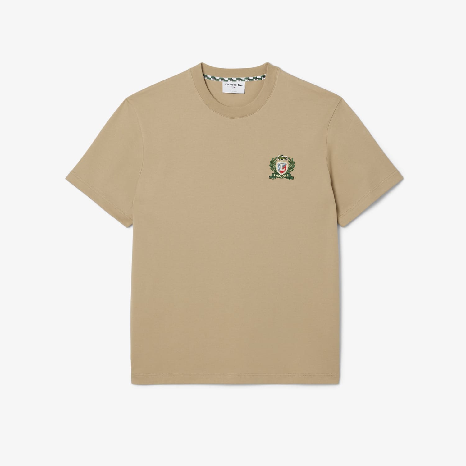 Mens Lacoste French Made Embroidered Badge T-Shirt in viennese