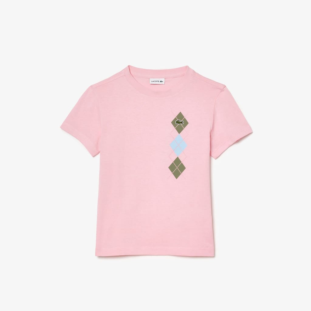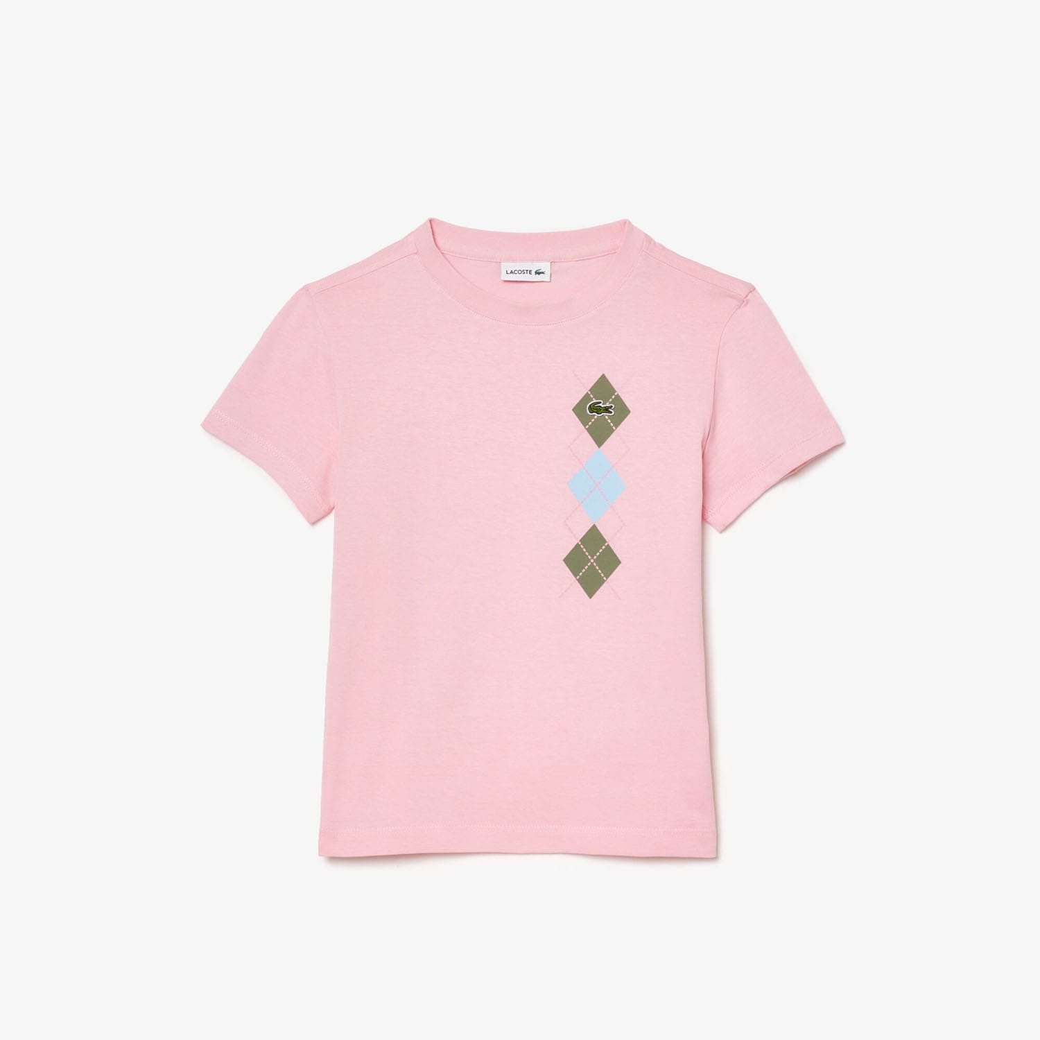 Argyle Print Cotton T-shirt Organic cotton jersey Argyle print on bust Recycled green crocodile on bust -
