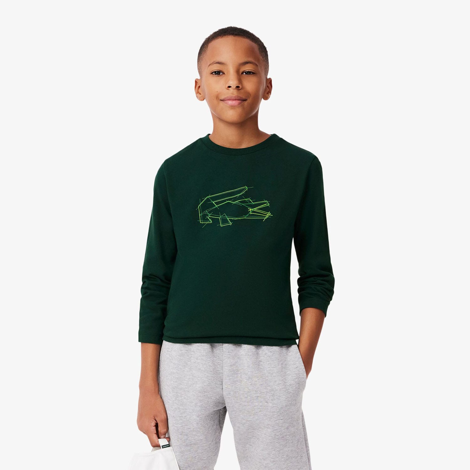 Heavy Cotton Crocodile Graphic T-shirt Thick organic cotton jersey Timeless crew neck Crocodile print on front Recycled green crocodile below neck at back -