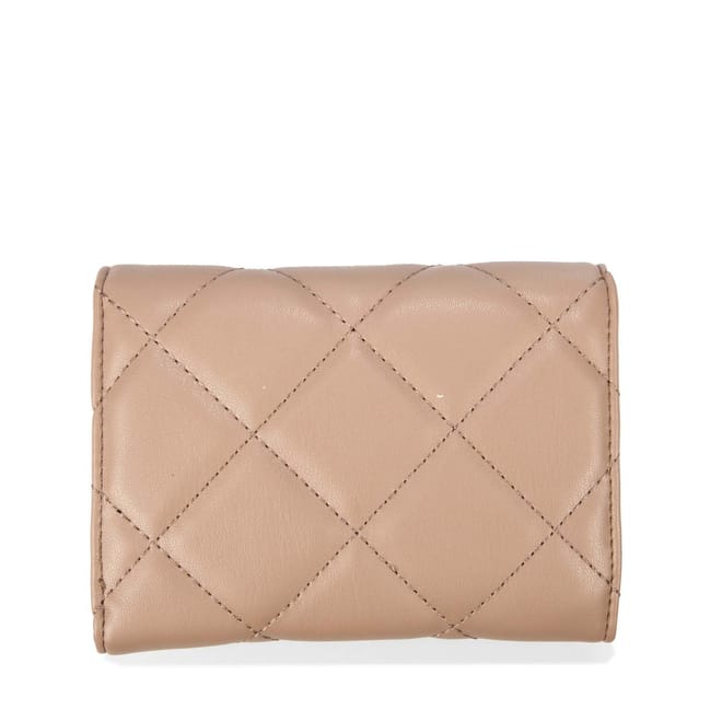 The Valentino Bags Ocarina Quilted Wallet is a timeless accessory. Crafted from a premium PU material in a classic quilted design with polished gold tone accents. The secure popper fastening front flap allows access to multiple handy internal compartments. Signature Valentino Bags branding at the front of the wallet completes the design. -