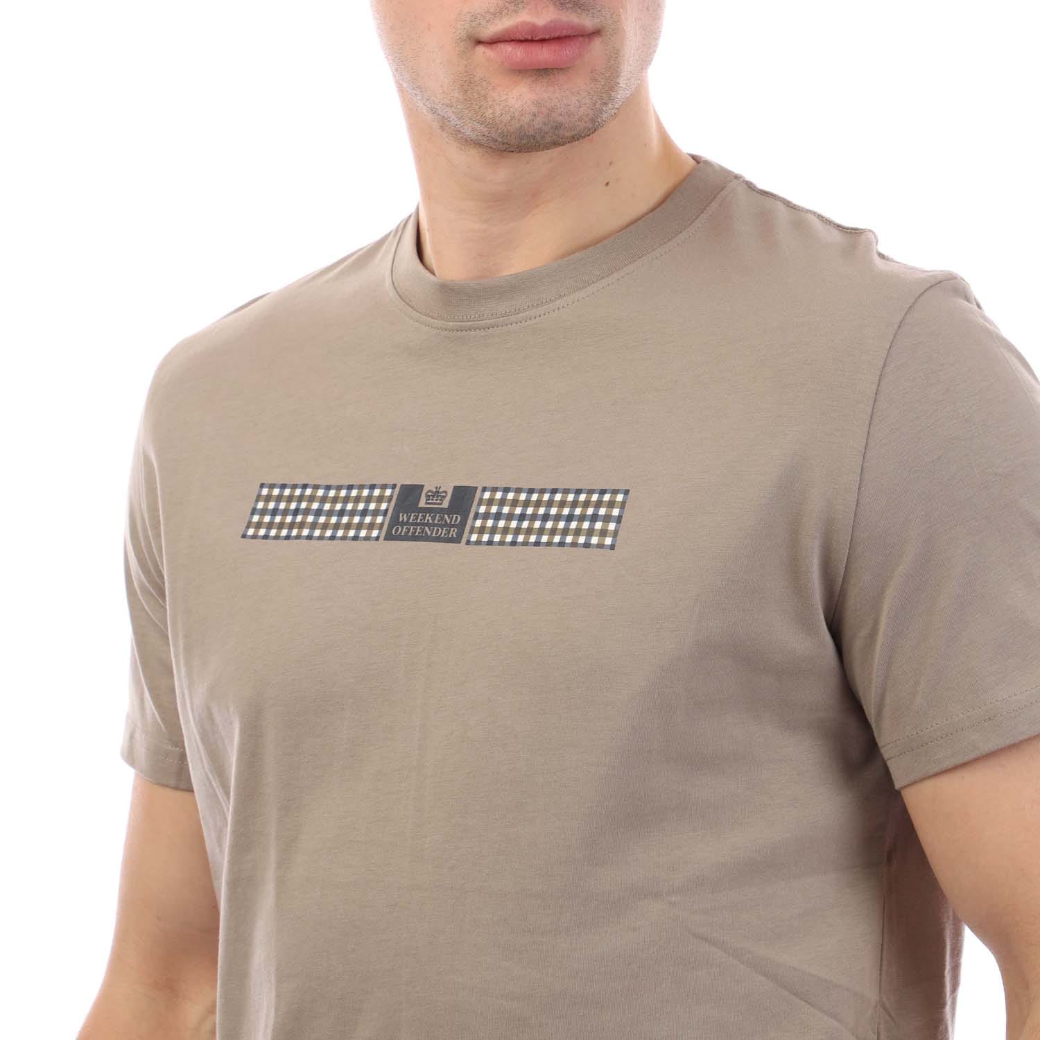 Mens Weekend Offender Shareck Check T- Shirt in stone.