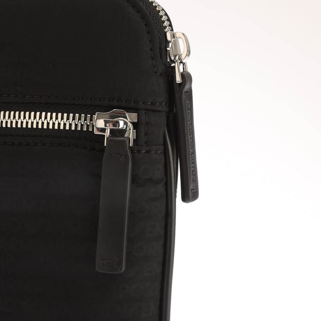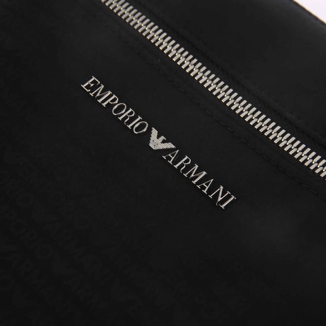 Emporio Armani Nylon Allover Jacquard Logo Shoulder Bag in black.