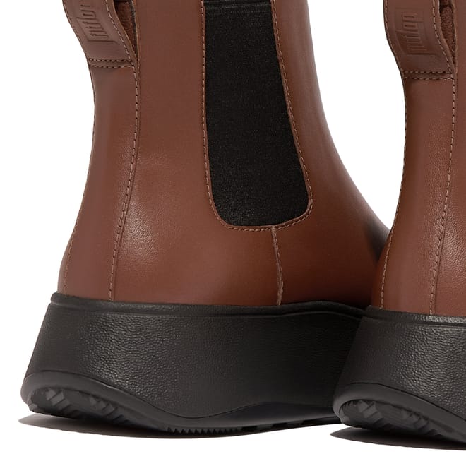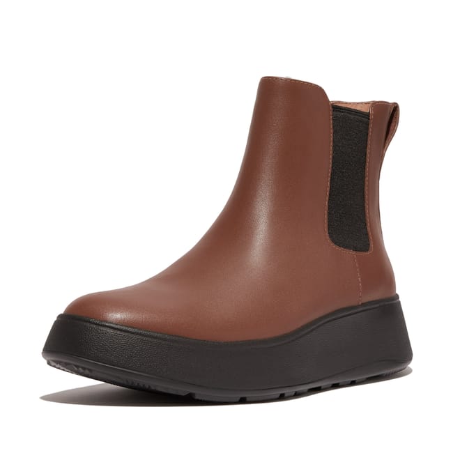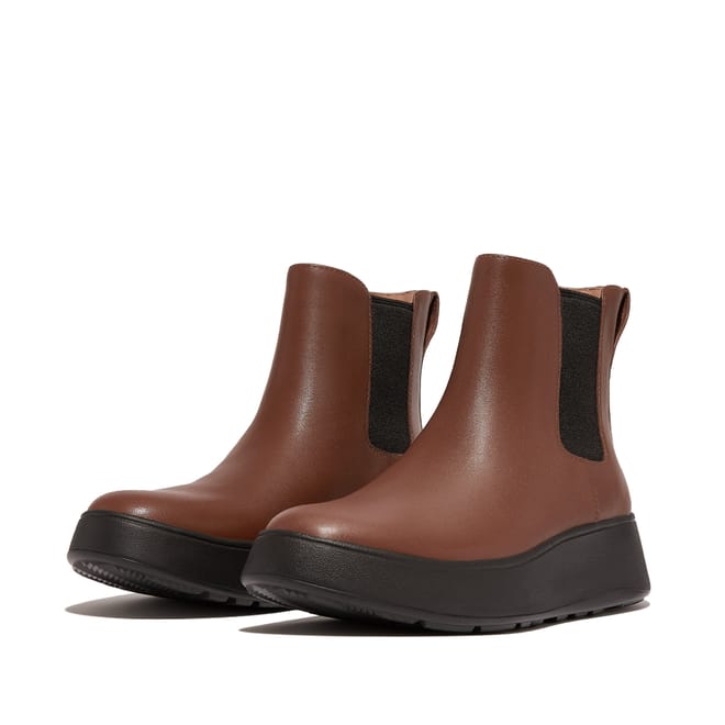 Womens FitFlop F-Mode Leather FlatForm Chelsea Boots in brown