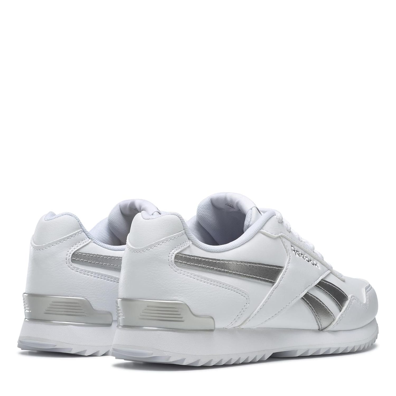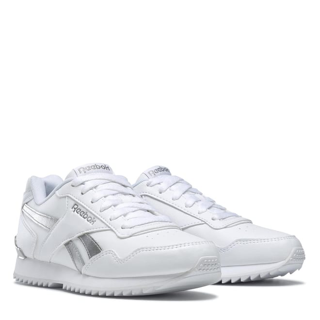 These Reebok Royal Glide Ripple Clip Trainers are iconic classic design that features a panelled leather upper with a metallic branding to the side .