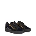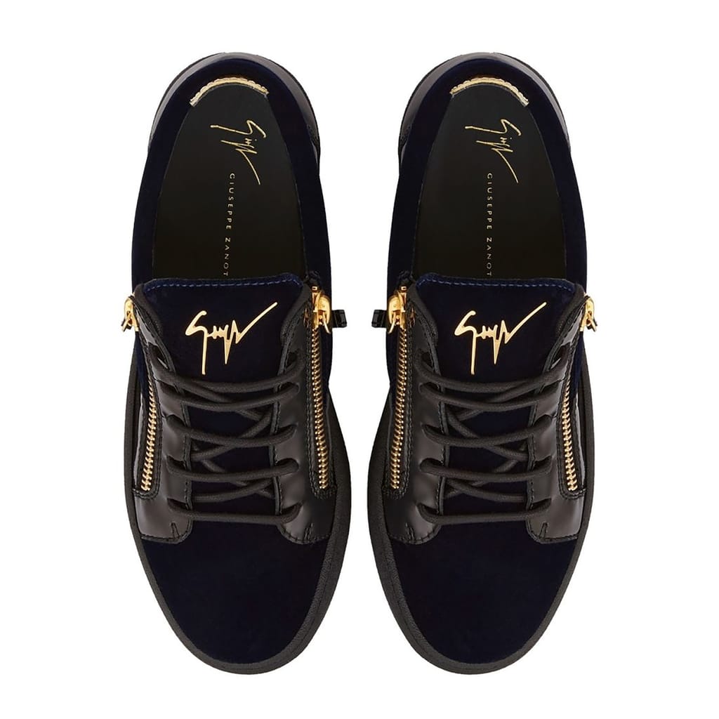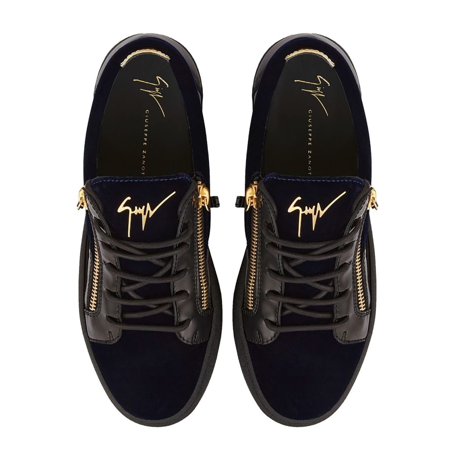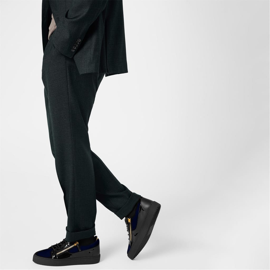 Rejuvenate your casual look with the May velvet panel low top trainers from Giuseppe Zanotti. Luxuriously crafted using supple soft velvet, this style features contrasting patent and leather panels and boasts zip fastenings to the sides. Adorned with the brands iconic logo to the tongue, this style is finished with a lace up closure and comfortable rubber sole.