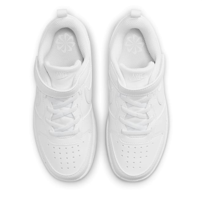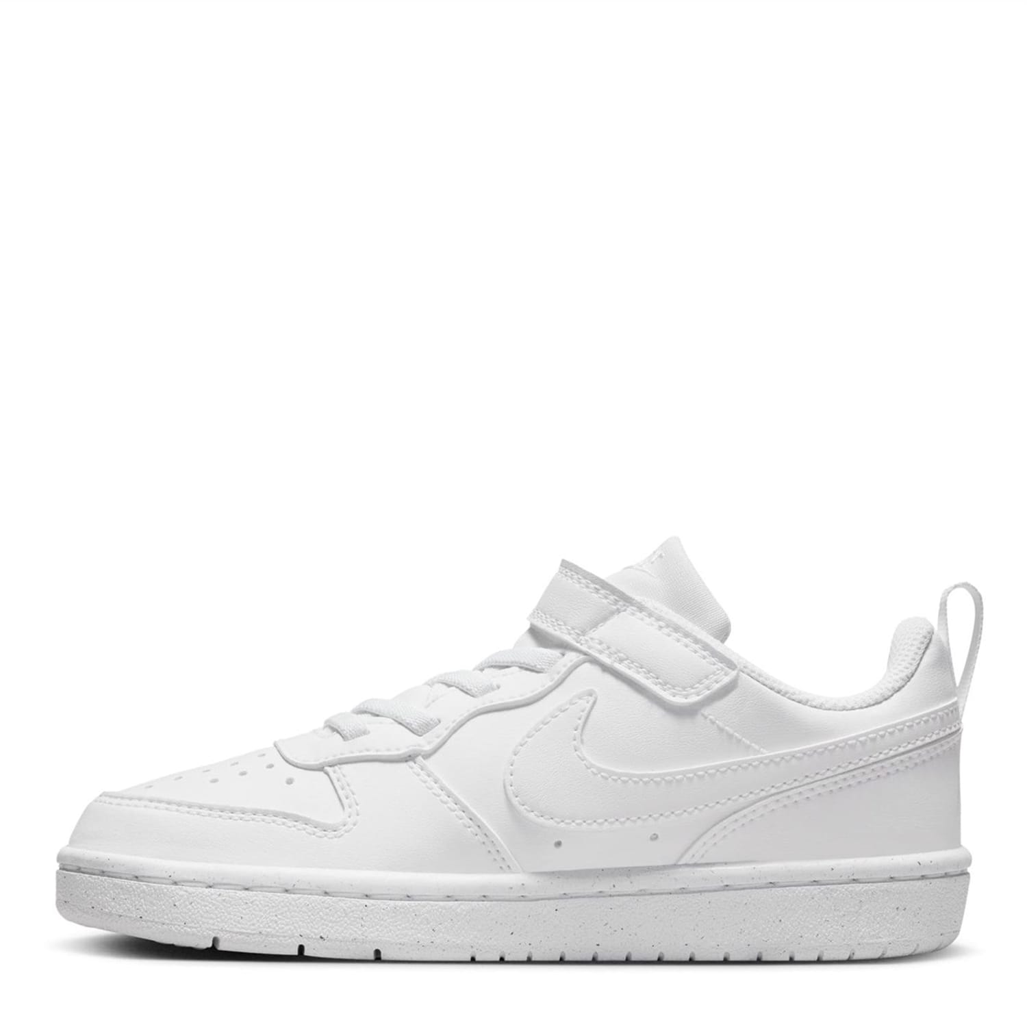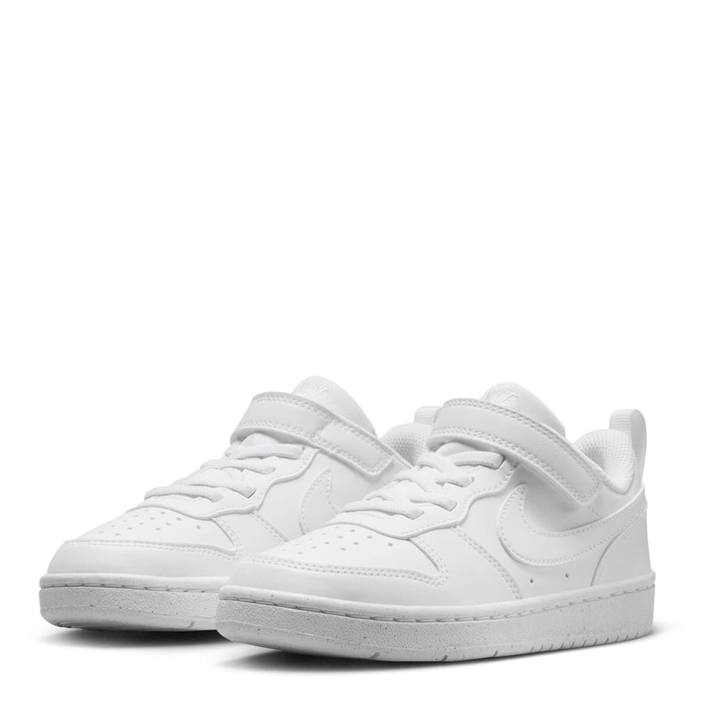 These Nike Court Borough Trainers are designed with elasticated laces and hook and loop tape fastening. They feature a padded ankle collar and tongue for comfort and support. These trainers have a loop tab to the heel and a chunky midsole. They also have a grip sole and are complete with Nike Swoosh branding.