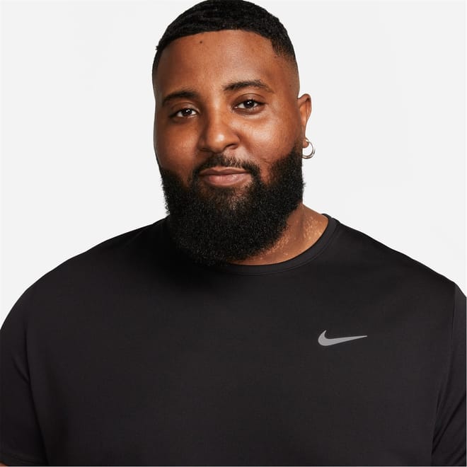 This Nike DriFit Miler Running Top has been designed to provide a comfortable wear when running. The design features a crew neck, short sleeves and lightweight fabric that is breathable, while DriFit technology moves sweat away from the skin for a lighter fresher feel. The shirt has flat lock seams to reduce irritation and is completed with reflective details plus the classic Nike Swoosh for an instant sports vibe. Please note: The style you receive may vary from the image shown. -