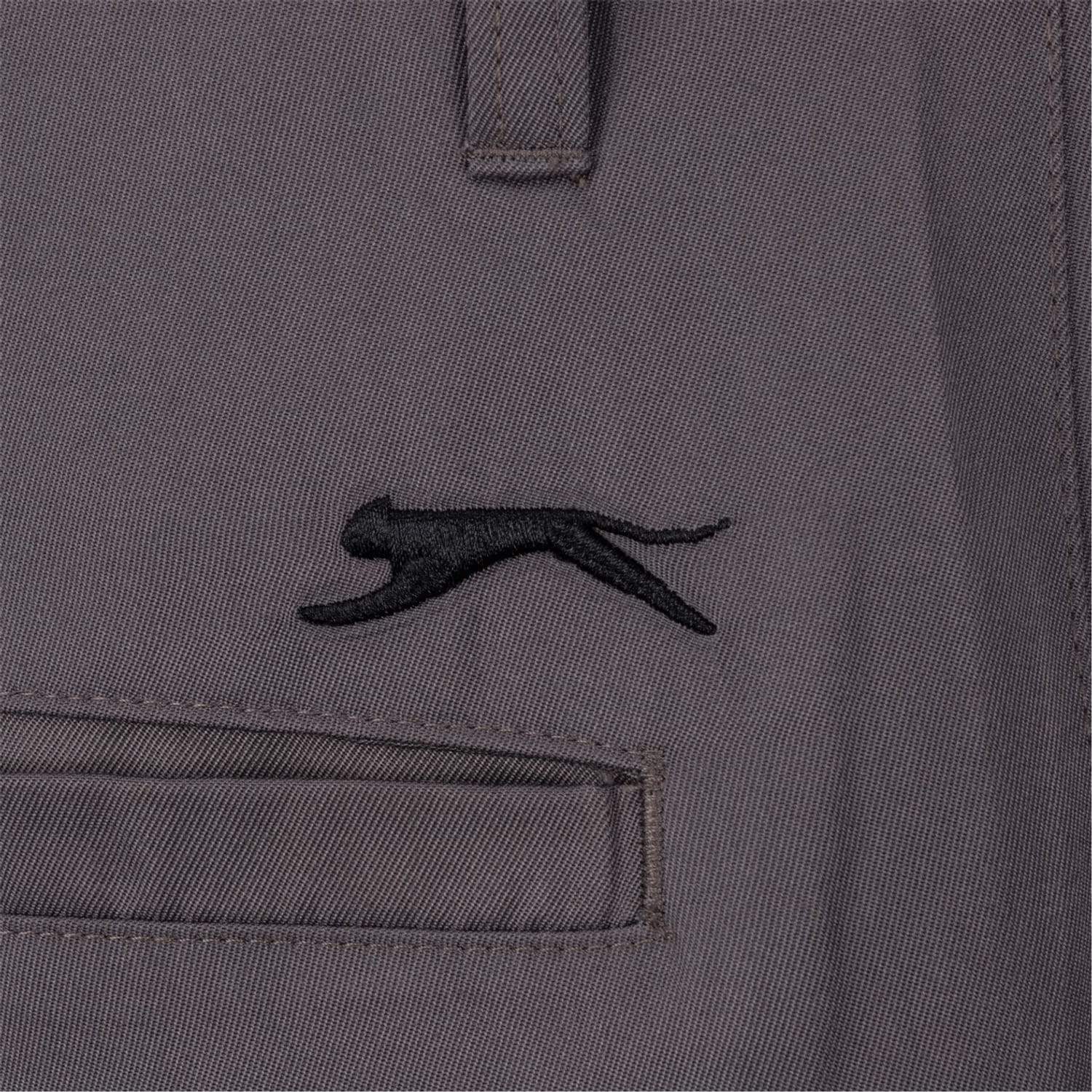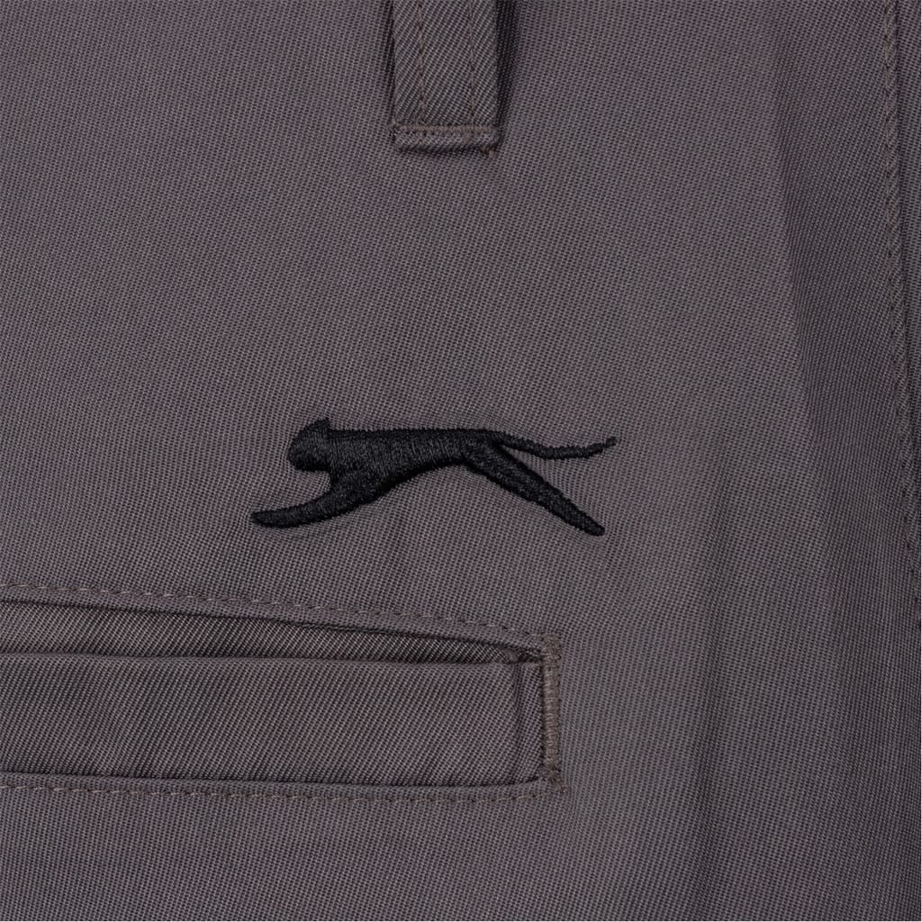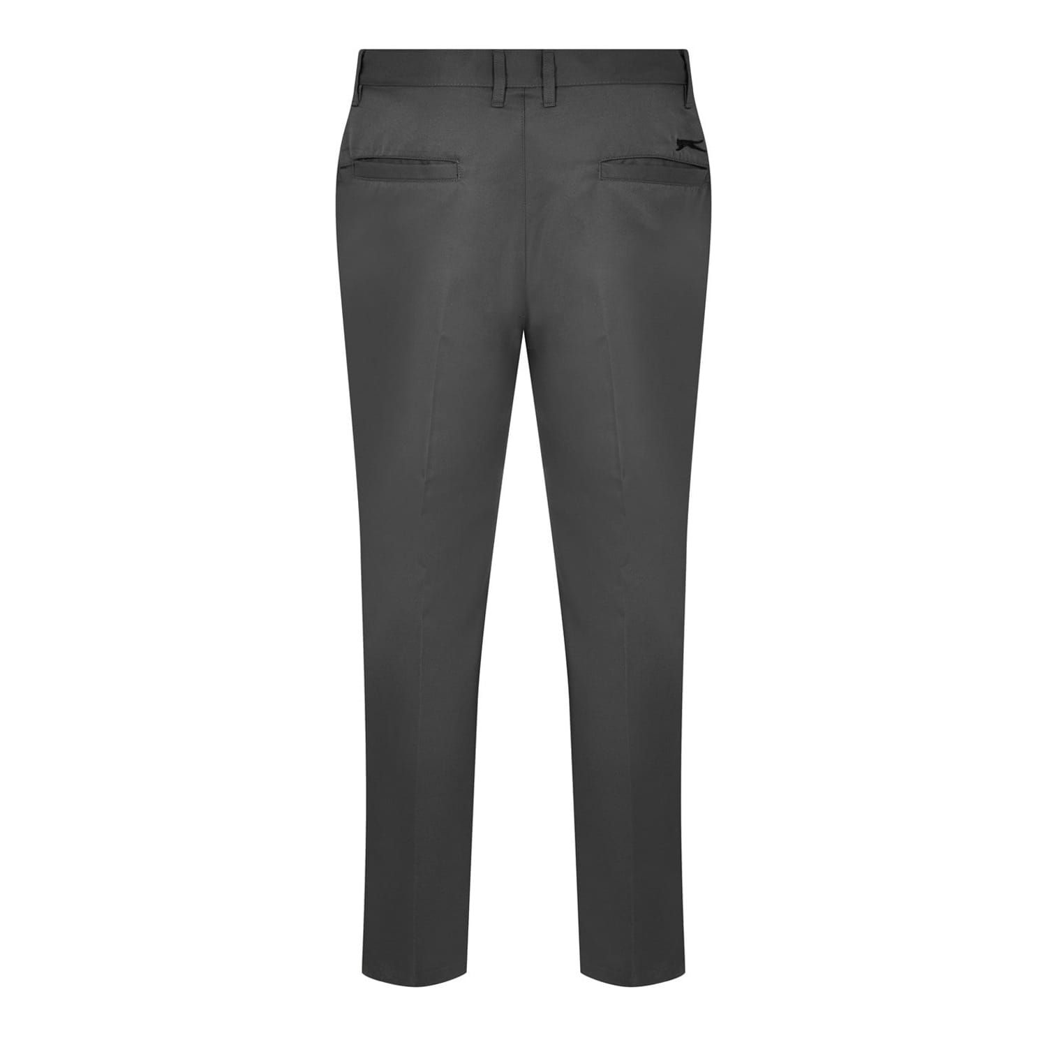 - These Slazenger Golf Trousers are perfect for the range. The golf trousers are cut in a regular fit and feature a zipped fly with button fastening, belt loops. Crafted in a soft polyester material, Breathable and lightweight. Two open hand pockets and two back pockets , these make the trousers looks fashion. Complete with the Slazenger logo embroidered subtly to the back for brand recognition.