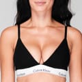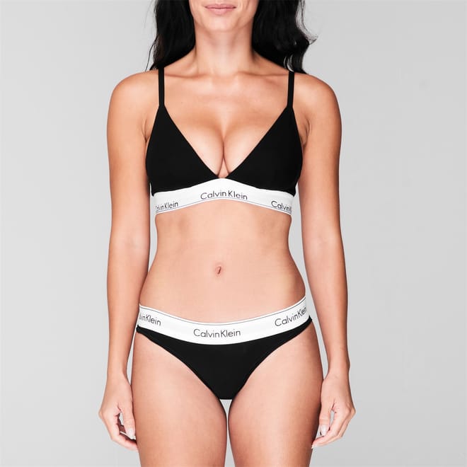 Redefine your lingerie collection with oodles of designer appeal, courtesy this modern triangle bra from Calvin Klein. Created from a stretchy cotton fabric, this non-padded design boasts a branded contrast detailing at the band for instant recognition. Finished with adjustable straps in a solid colourway, this bra is best paired with matching briefs for a complimentary sleek look. Material Composition: 53% cotton 35% modal 12% elastane. Machine washable - follow care label.