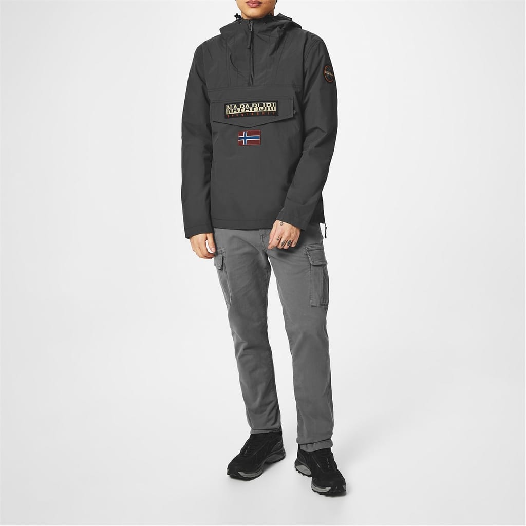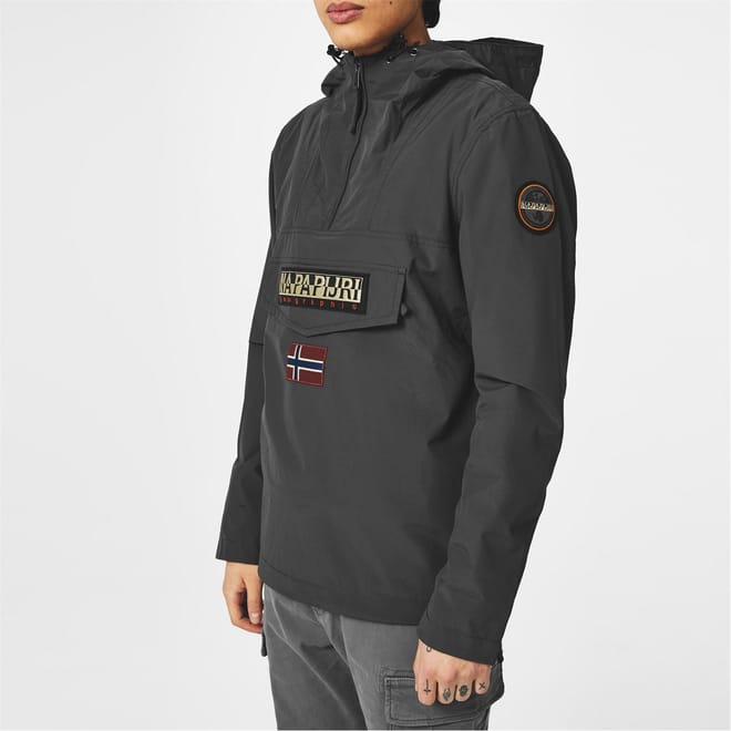Revive your outerwear wardrobe with this Rainforest Pull Over Jacket from Napapijri. Crafted from a Polyester fabrication to withstand minimal weather, this pull over construction details a toggle adjustable hood, long sleeves, a central half zip closure and side zip detailing to the hem for a structured fit. Boasting a storm flap zipped front pocket for a practical touch, this jacket is finished with the brands logo embroidered to the front for instant brand appeal. Wear this look with jeans during the day or joggers for a casual on-the-go look.
