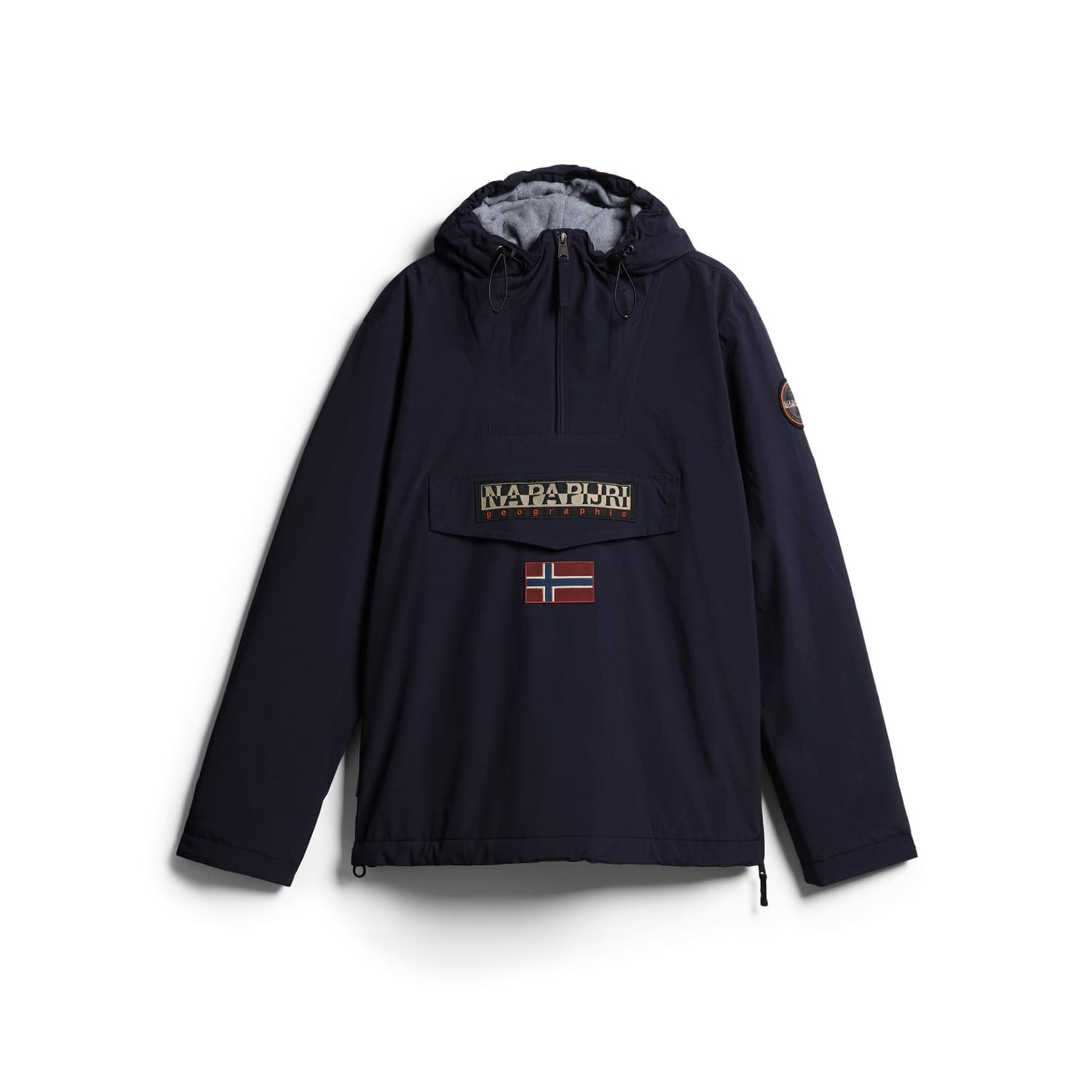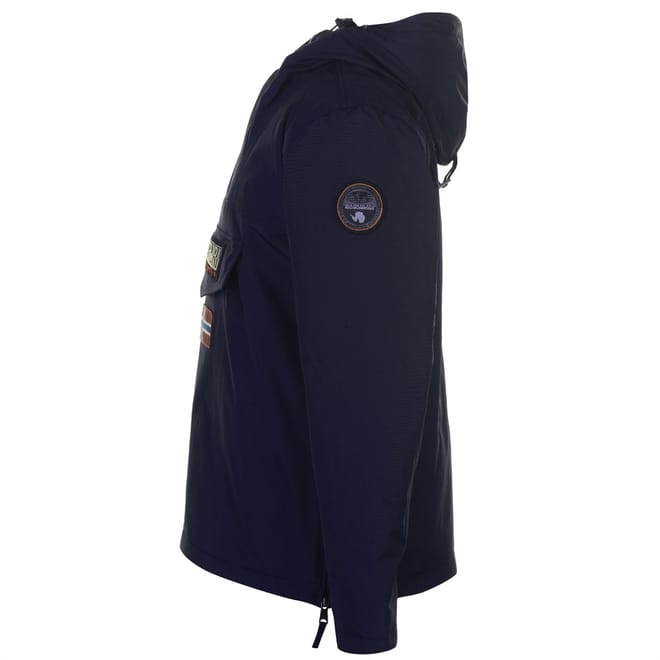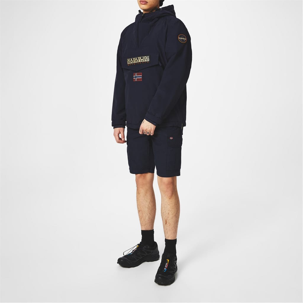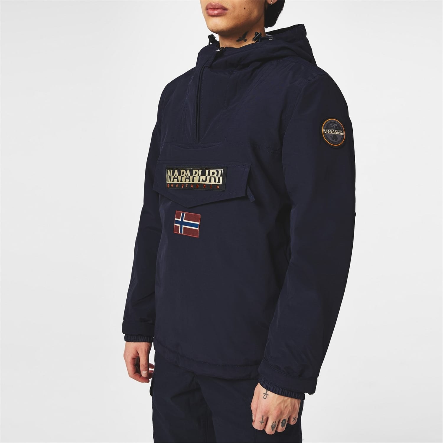 Revive your outerwear wardrobe with this Rainforest Pull Over Jacket from Napapijri. Crafted from a Polyester fabrication to withstand minimal weather, this pull over construction details a toggle adjustable hood, long sleeves, a central half zip closure and side zip detailing to the hem for a structured fit. Boasting a storm flap zipped front pocket for a practical touch, this jacket is finished with the brands logo embroidered to the front for instant brand appeal. Wear this look with jeans during the day or joggers for a casual on-the-go look.