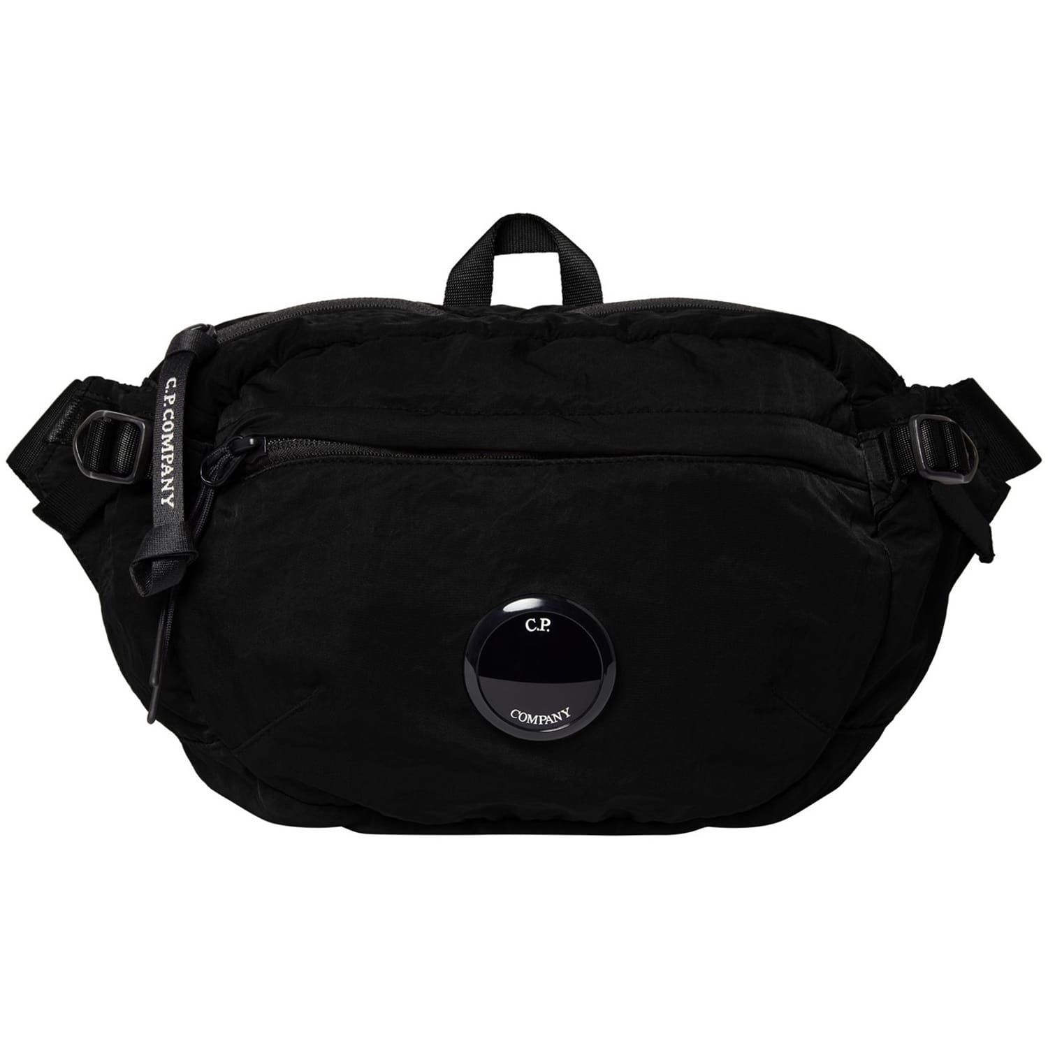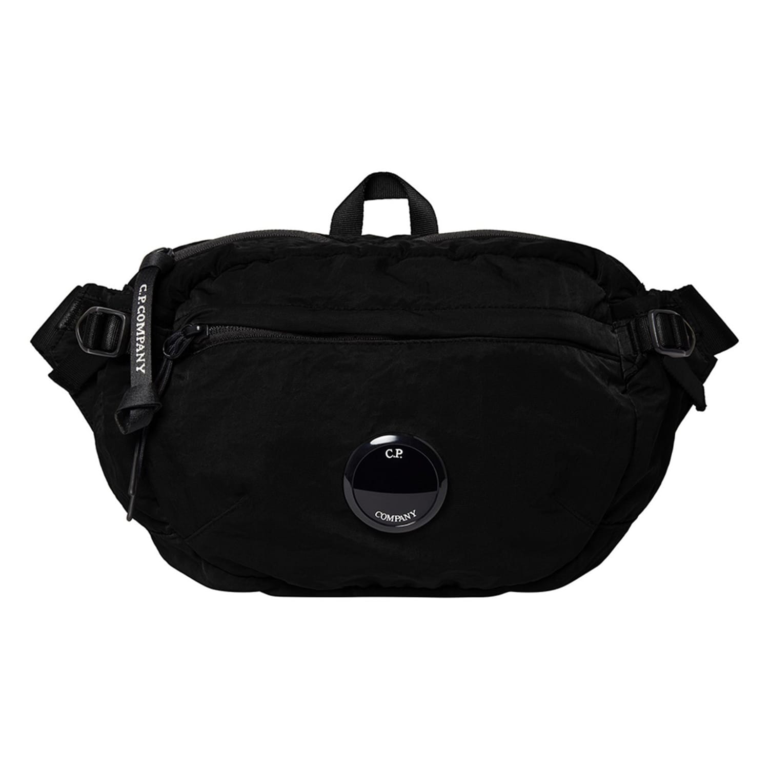 Style meets practicality with the Lens Bum Bag from Italian sportswear experts CP Company. Crafted in a weather resistant nylon construction with an adjustable strap for comfort, this accessory features two front pockets with zip fastenings and a central comparment with an inner flat pocket- meaning there is more than enough room for all of your on-the-go-essentials. Adorned in a solid colour block throughout, the design is completed with CP Company's lens motif to the front of the bed for luxury appeal and a high-end finish. External Fabric: 100% nylon. Lining: 100% polyester. Machine washable at 30 degrees - always refer to and follow washing instructions.
