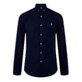 A timeless wardrobe essential, this Polo Ralph Lauren button-down shirt delivers classic American styling with its clean lines and premium cotton construction. The signature pony logo adds a subtle mark of quality, while the button-down collar maintains a sharp appearance throughout wear. Perfect for both business and casual settings, this slim-fit design offers a modern silhouette without compromising on comfort.