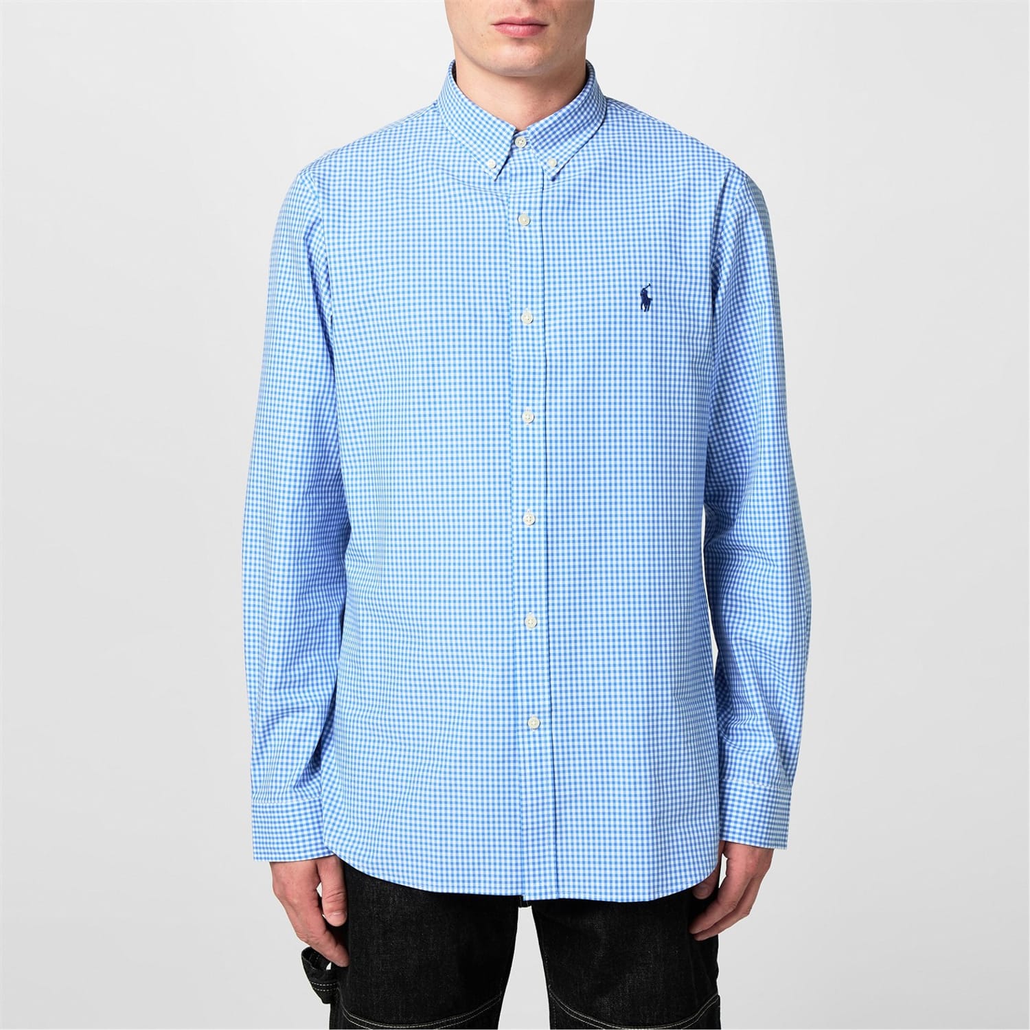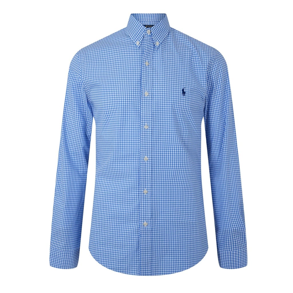 Switch up your smart wardrobe with the stylish Gingham Poplin Slim Fit Shirt brought to you by Polo Ralph Lauren. The signature Polo logo embroidery on the chest adds luxury to your ensemble. Whether it's a dinner with friends or date night, this shirt will help exude confidence.