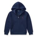 The Boy's Logo Full Zip Hoodie from Polo Ralph Lauren will make a fresh addition to your child's everyday wardrobe. Made from a soft cotton material, this hoodie is cut in a regular fit and features a full zip closure with a hooded neckline, long sleeves, two open pockets, a straight hemline and ribbed trims for a snug fit. Perfect for kickabouts, the look is finished with the brand's signature pony logo embroidered on the left chest for brand recognition. Machine washable at 30 degrees.