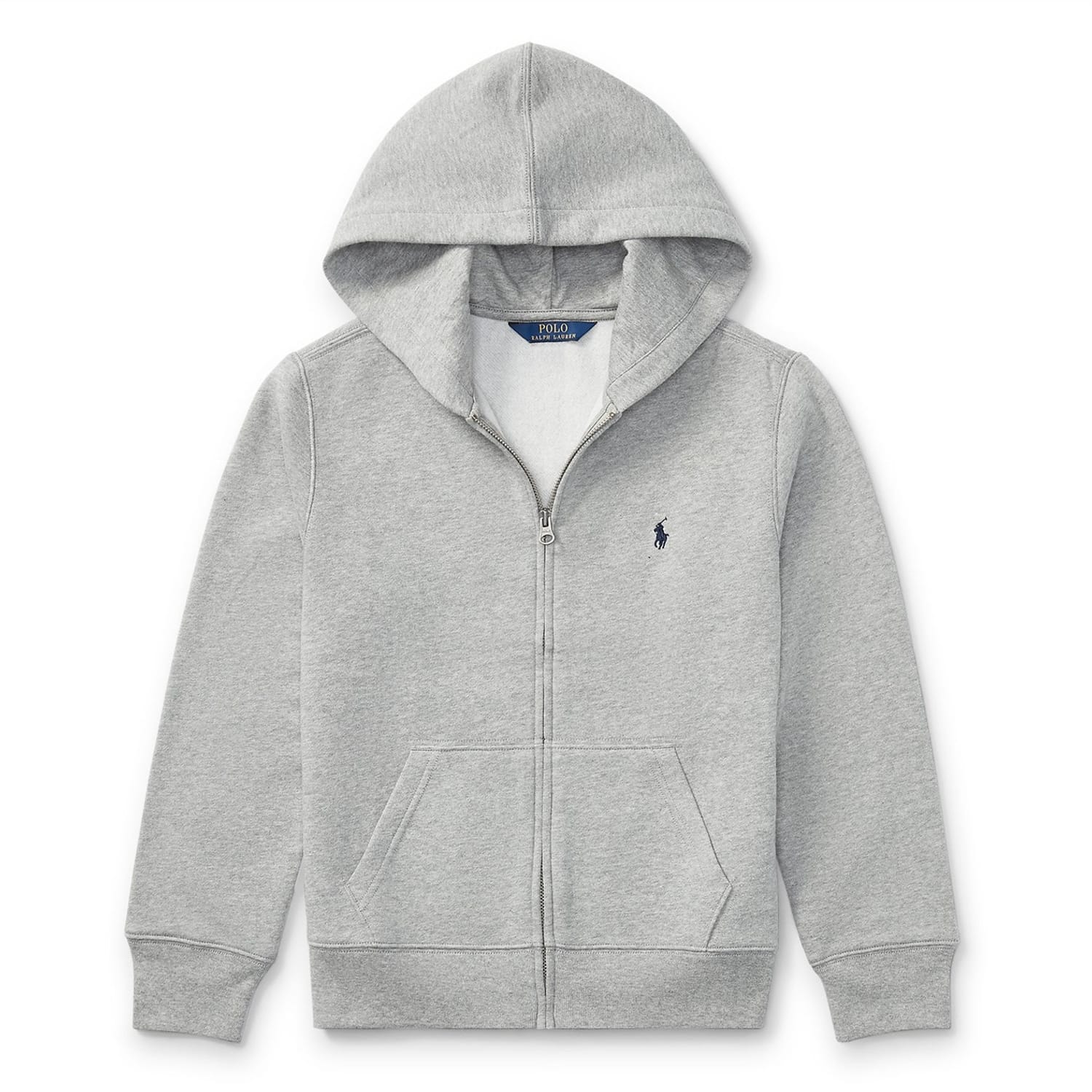 The Boy's Logo Full Zip Hoodie from Polo Ralph Lauren will make a fresh addition to your child's everyday wardrobe. Made from a soft cotton material, this hoodie is cut in a regular fit and features a full zip closure with a hooded neckline, long sleeves, two open pockets, a straight hemline and ribbed trims for a snug fit. Perfect for kickabouts, the look is finished with the brand's signature pony logo embroidered on the left chest for brand recognition. Machine washable at 30 degrees.