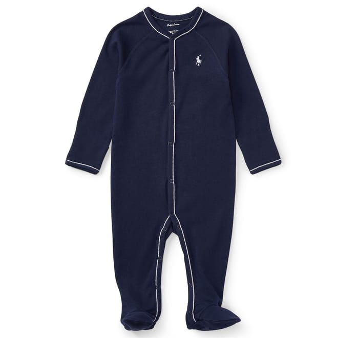 Keep your little one warm and comfortable in this Polo Ralph Lauren Tipped All-In-One. It has been crafted from delightfully soft fabrics, whilst the ribbed trims help to provide a perfect fit. The look is completed with tipped detailing and an embroidered Polo Ralph Lauren logo.