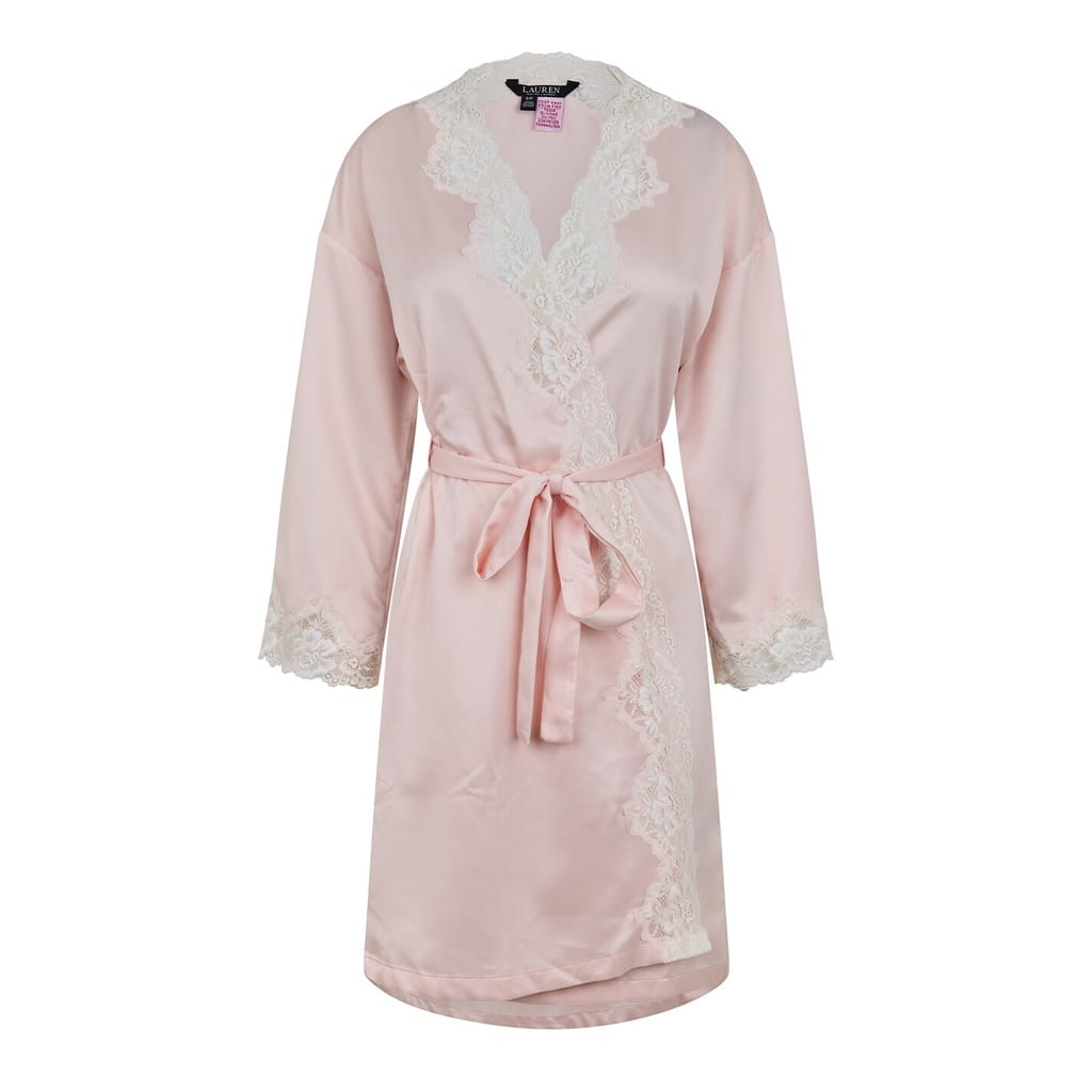Whether you are getting ready for a night out on the town or relaxing at home after a hard day, do it in style with the Lauren By Ralph Lauren Lace-Trim Satin Robe. Perfectly complementing every lounge ensemble with its timeless style and classic hue, this dressing gown is sure to become a mainstay staple in your everyday routine.