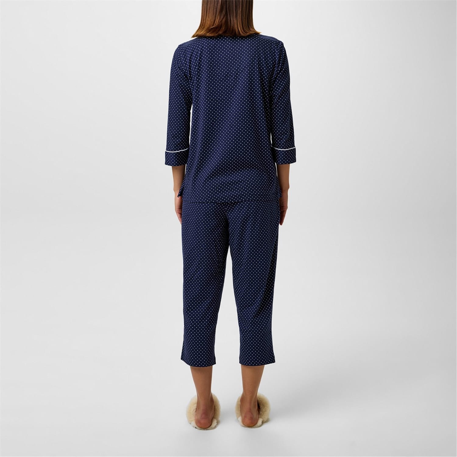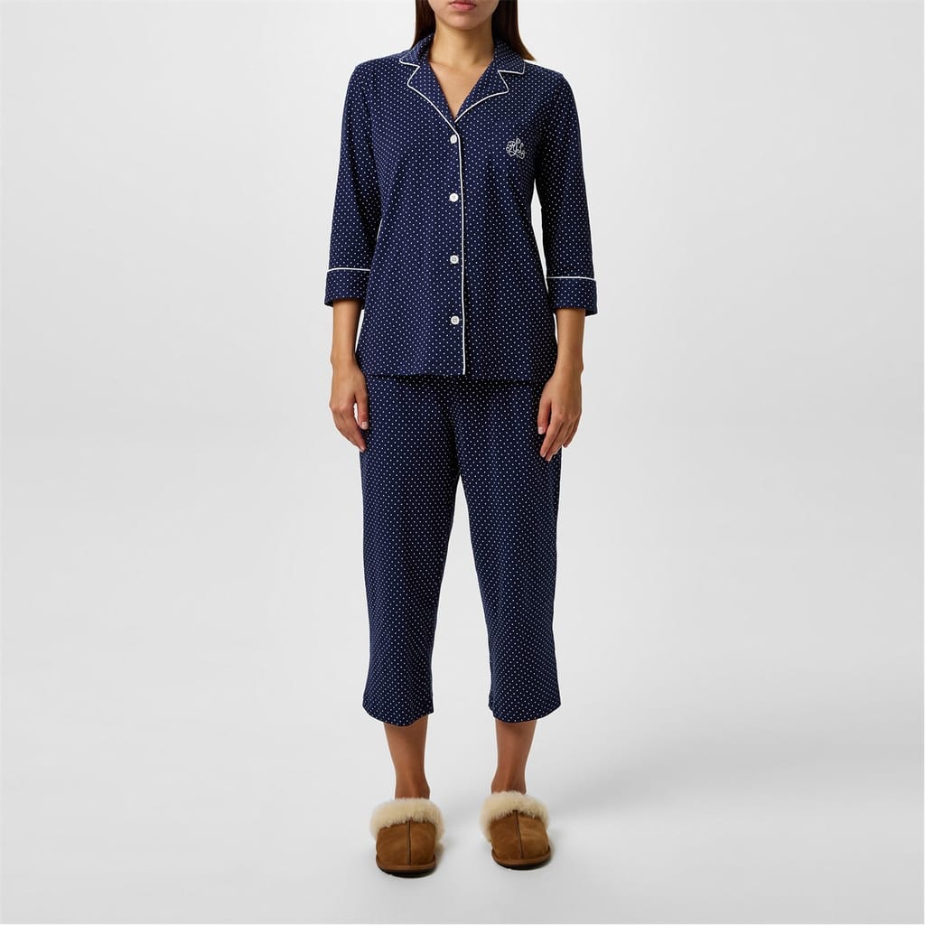Whether it's a lazy Sunday morning or a well-earned relaxing night, the Lauren By Ralph Lauren Cotton Jersey Capri Sleep Set is the perfect choice for indulgent off-duty moments. Constructed from a soft and breathable fabric, these PJs are sure to keep you comfortable even during warm weather, so you never miss out on those precious hours of sleep.
